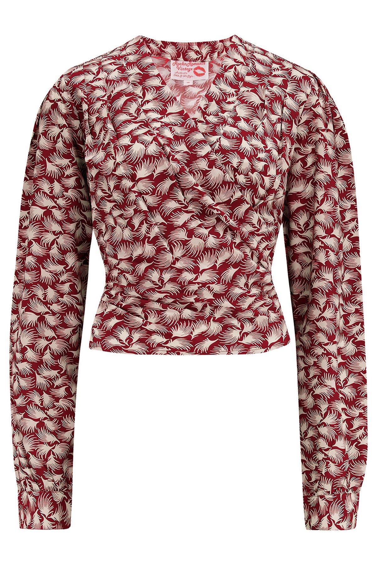 Unleash your inner vintage vixen with the Darla Long Sleeve Wrap Blouse in Wine Whisp Print, where retro charm meets modern chic. Its softly draped poly crepe fabric and delicate feather pattern make every wear feel like a stylish whisper from the golden age. The flexible wrap design, with charming pleats that flatter every curve, ensures you look purrfectly tailored to your mood—tie it at the front for a flirtatious twist or at the back for a sophisticated silhouette. This blouse is a true style muse, blending timeless elegance with a dash of playful personality, perfect for turning heads and stealing hearts.