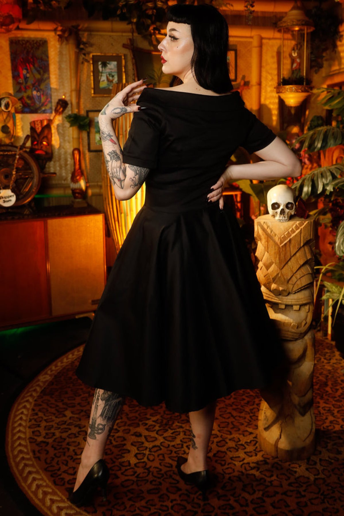 Darlene Stretchy Circle Swing Dress - Plain Black  Shop now at Kitty Darling