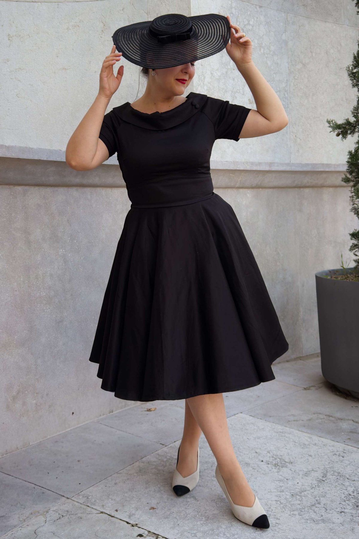 This easy-to-care piece from your UK retro boutique, Kitty Darling, is ready to make all your vintage dreams come true. Whether you’re seeking a vintage swing dress or a 1950s rockabilly outfit, this Darlene dress ticks all the boxes. Be the quintessential fashionista with this little black dress with a twist. It’s ready to find its new home – your wardrobe!