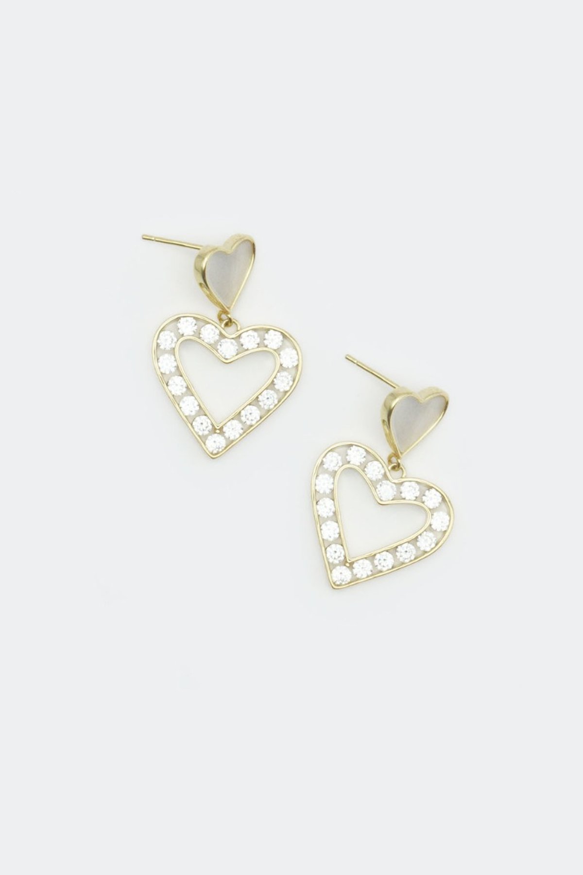 💖 Light up your day with our Diamante Heart Drop Earrings. These enchanting accessories are the perfect blend of elegance and playful charm. Encrusted with shimmering diamantes and finished in gold, they sparkle with a vintage flair.