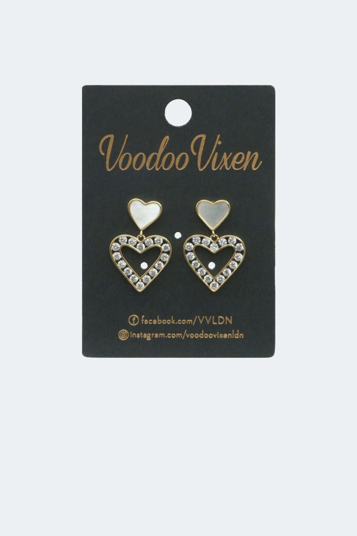 Unleash your inner glamour with these stunning diamante heart drop earrings—where vintage-inspired charm meets a dash of modern sparkle. The gleaming gold finish perfectly frames the delicate white pearl-heart studs, creating a playful yet sophisticated look that’s simply purrfect for elevating any ensemble. At 3cm long, they strike just the right balance between dainty and eye-catching, making them an irresistible accessory for those who love a touch of romance with their style.
