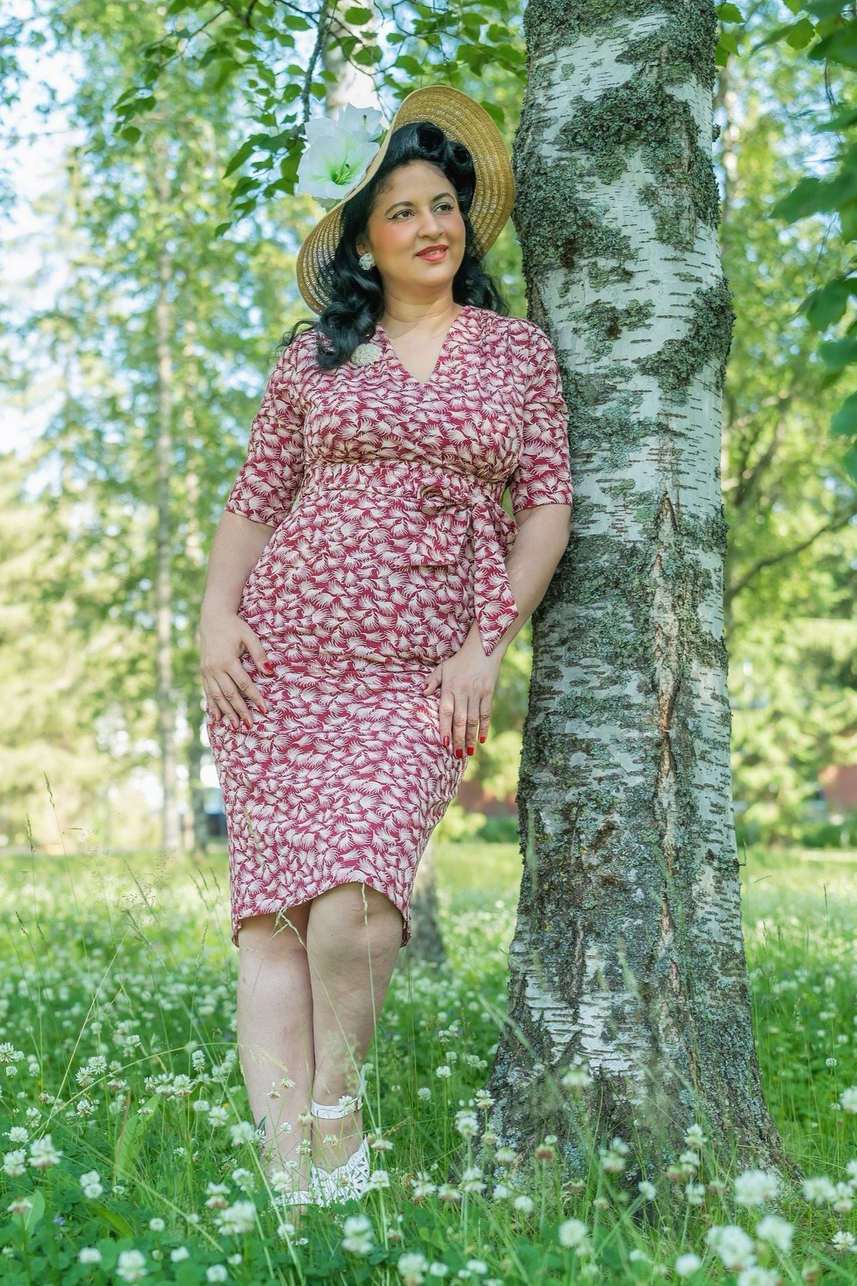 For the ladies, pair this beauty with your favourite vintage-inspired heels and a delicate clutch — perhaps a splash of cream or gold to complement the leaf pattern. Men can elevate their look with sleek loafers and a sharp blazer, keeping it chic yet subtle. Unisex styles can add a bold belt or minimal jewelry to let the dress do all the talking. Whatever your style, remember: the right accessories can make your look the cat’s whiskers!