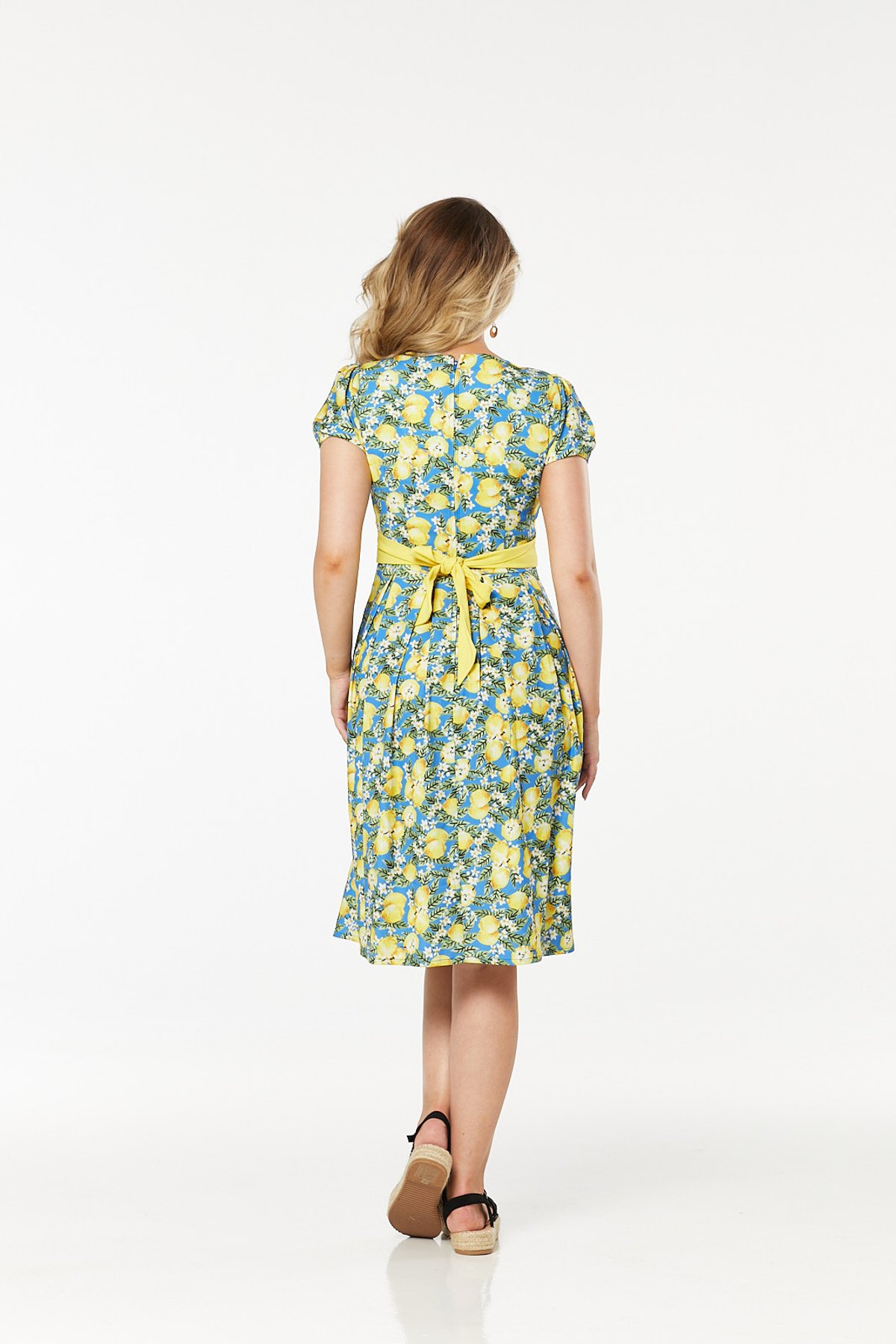 💃🍋 Step into the charming world of the 1940s and 1950s with our vibrant Fin Dress! This vintage floral tea dress is your new brunch-to-dinner go-to, infused with iconic UK retro vibes. Adorned with a lively lemon pattern set against a tranquil blue, it’s pure summertime elegance.