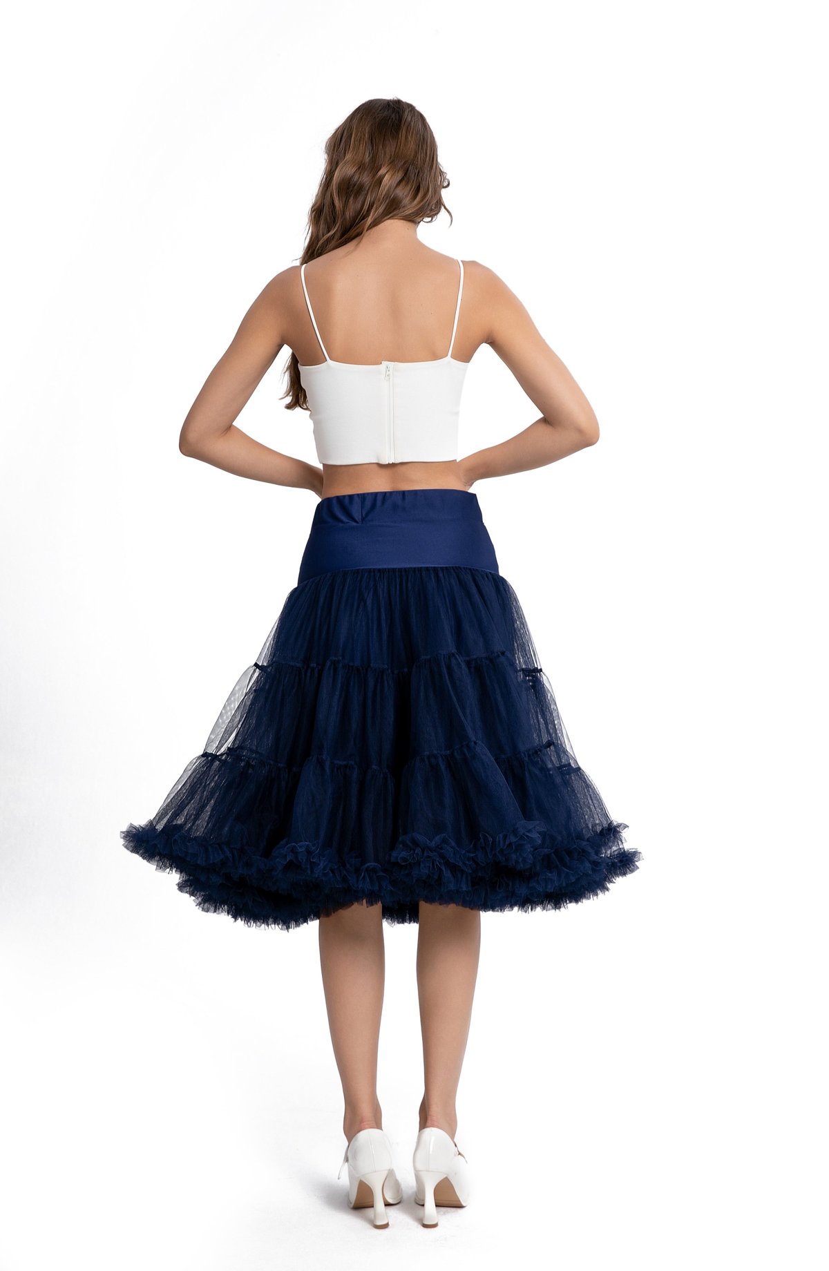 Unleash your inner vintage vixen with this navy blue petticoat that’s as playful as it is polished. Its luscious layers of mesh create a wonderfully voluminous silhouette, perfect for those who want to turn heads and add a little extra sass to their step. The elasticated waistband and double button system ensure a fit that’s as comfy as it is flawless—so you can twirl, sway, and strut with total confidence. With a touch of ruffle at the hem, this piece oozes timeless charm while giving your outfits that *purrfect* boost of glamour. Whether you’re charming at a retro fête or simply craving some extra poof on a night out, this navy blue beauty promises to keep you looking claw-some.