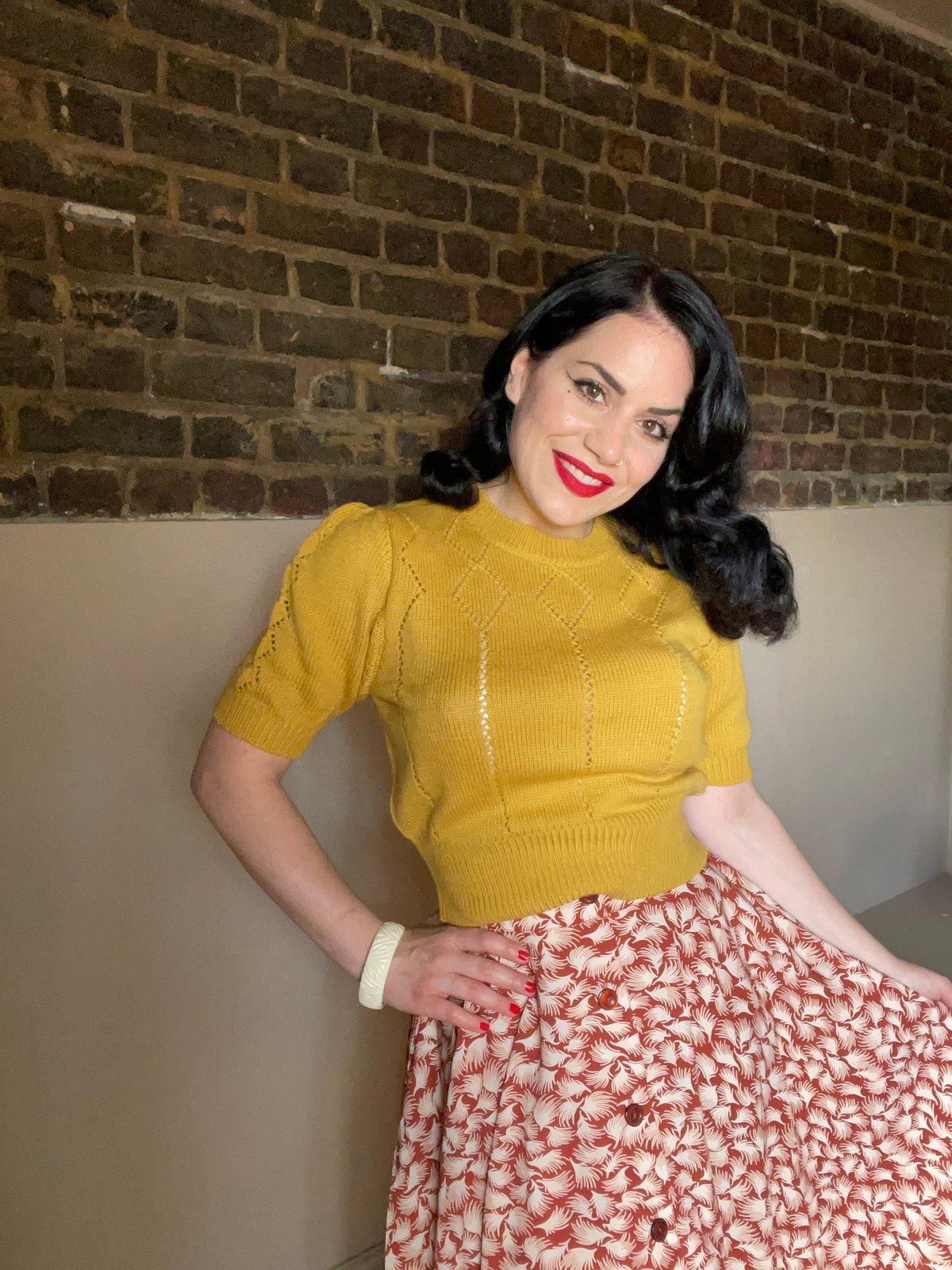 This versatile piece is ready to pounce on all your favorite occasions—from weekend brunches to relaxed afternoons in the park. It’s the kind of jumper that transitions seamlessly from daytime errands to a cozy evening out. Perfect for layering over your favorite jeans or skirts, it’s your go-to for effortless vintage vibes with just a hint of mischievous flair.