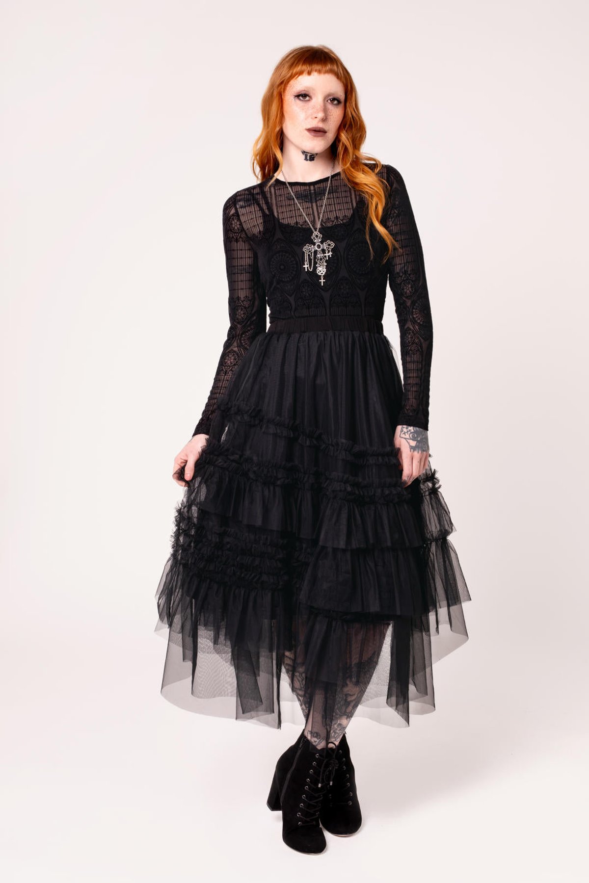 To elevate your look, add some statement jewelry—perhaps a bold choker or layered silver necklaces—dripping with dark sophistication. Pair with sleek heels or edgy boots to keep the mood mysterious, and don’t forget a smoky eye for that “purrfect” touch of allure. For a more refined vibe, keep accessories minimal and let the intricate lace do all the talking.