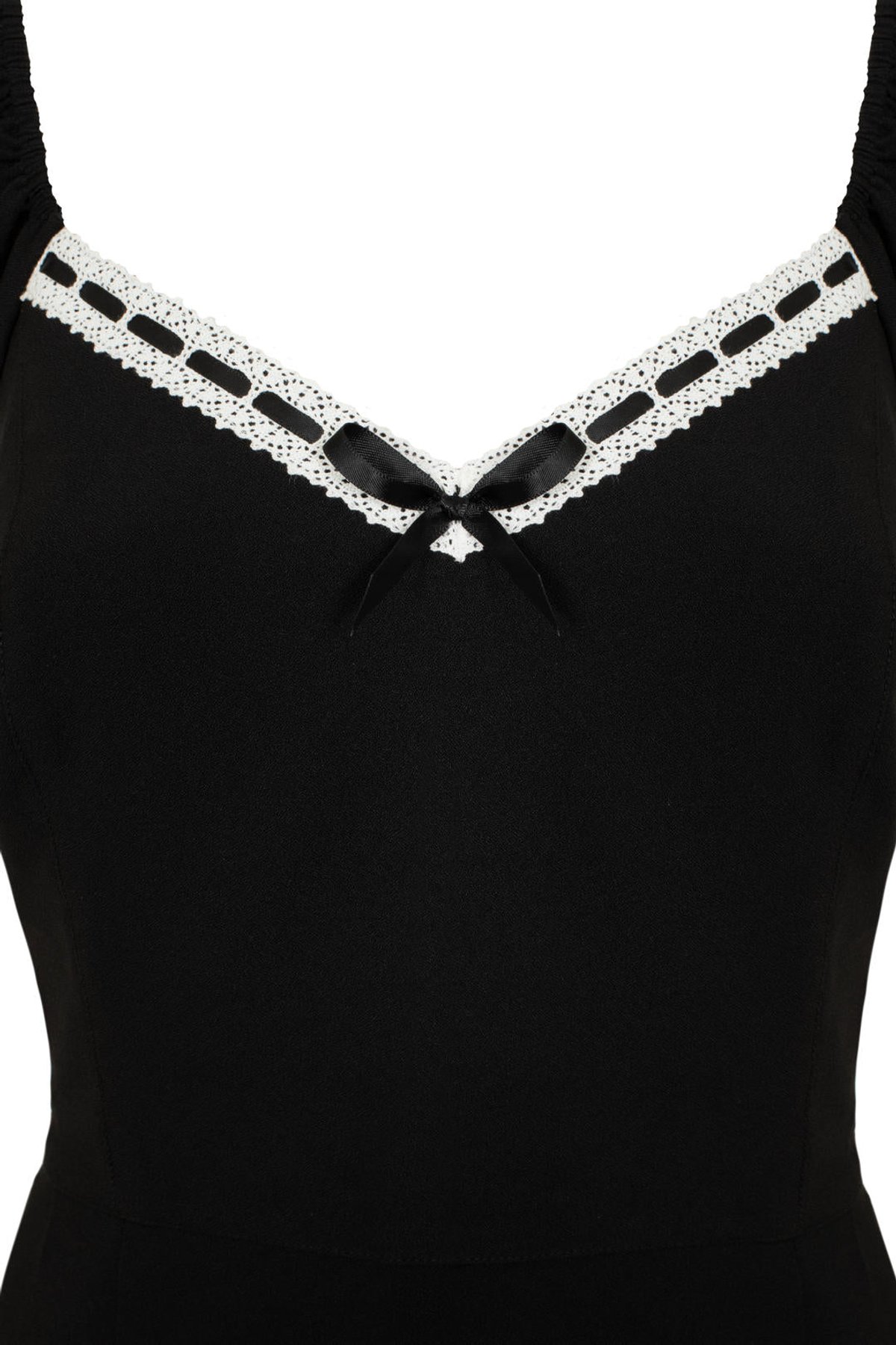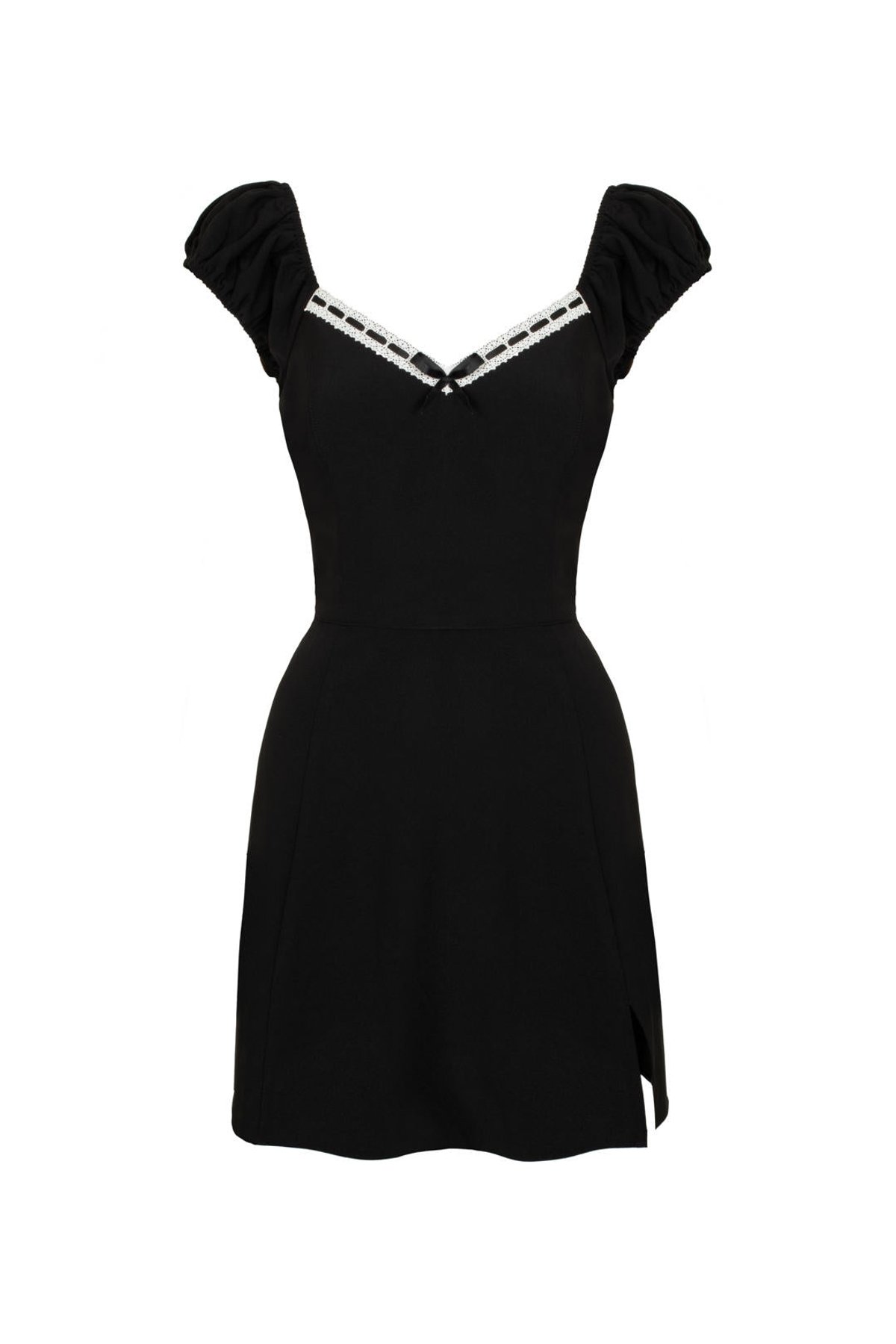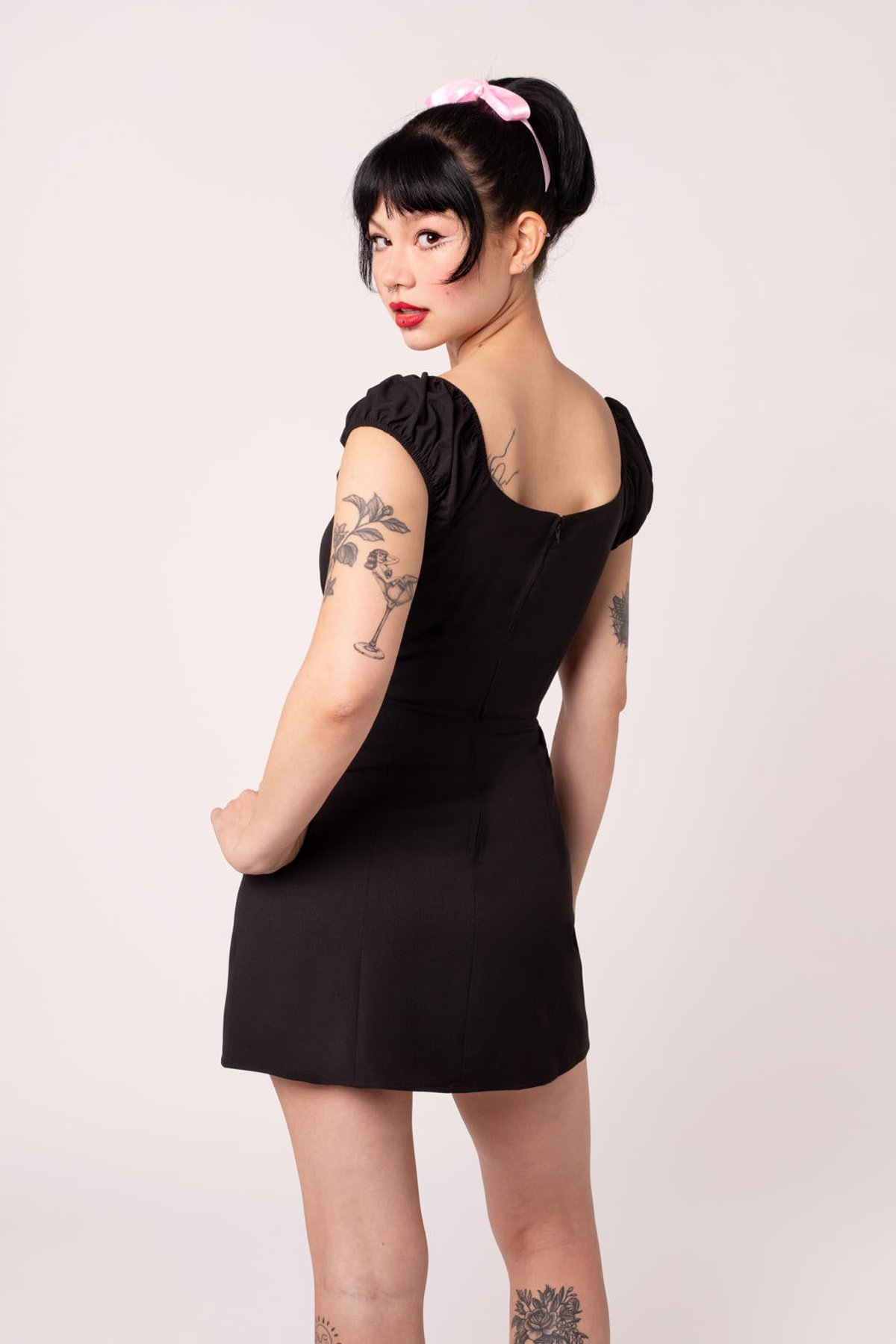 Unleash your inner siren with the Gracie Mini Dress—a purrfect blend of vintage charm and modern sass. From its flirtatious sweetheart neckline accented with delicate white lace to the playful bow detail, this dress is designed to turn heads. The elasticated puff sleeves offer versatile styling options—wear them on or off the shoulder—while the fitted bodice and flirty mini slit promise to keep all eyes on you. Crafted from a soft, stretchable fabric, it’s as comfortable as it is captivating, making it the ideal "claws-down gorgeous" choice for any occasion that calls for a dash of playful elegance.
