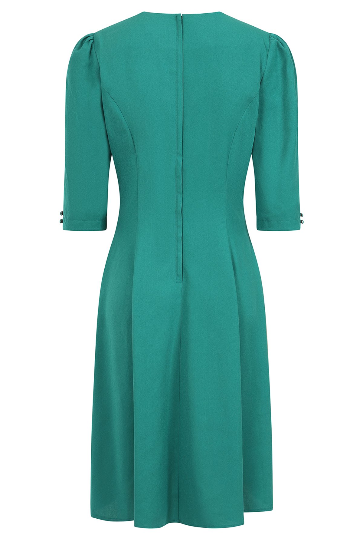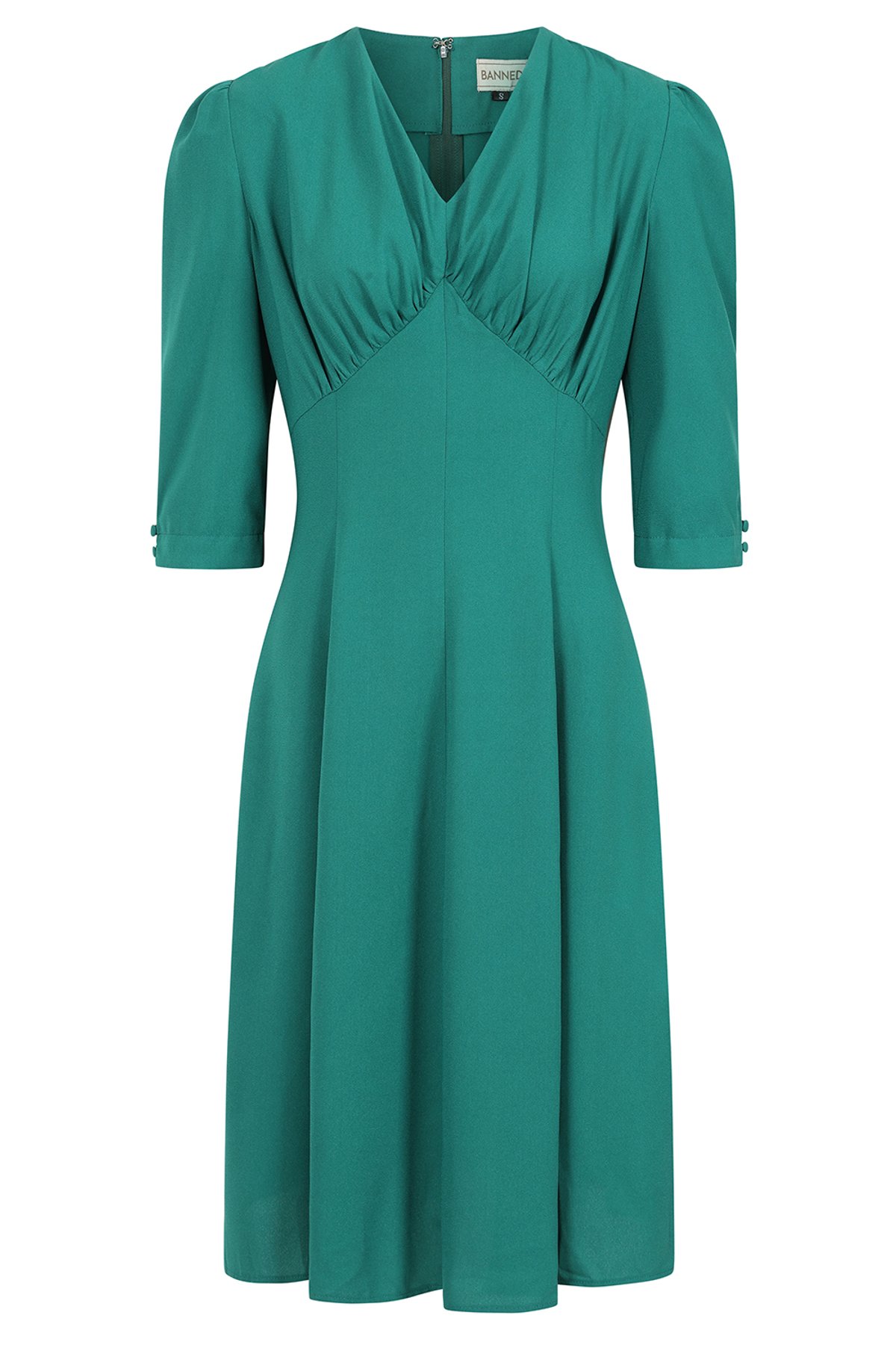 Unleash your inner film star with our Green Gioia 40s dress — a true showstopper that combines timeless elegance with playful charm. Its rich green hue and vintage-inspired silhouette make it a purrfect choice for those who adore a dash of old-Hollywood glam with a modern twist. The feminine v-neckline and gathered bodice flatter every figure, while the side pockets add just enough practicality to keep you looking chic and feeling fabulous. This dress is as versatile as it is gorgeous, ideal for turning heads at any affair or simply feeling like a vintage goddess in your day-to-day moments.