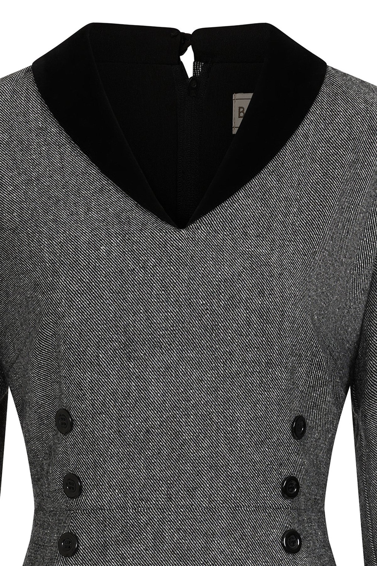 Step into the purrfect blend of vintage charm and modern sophistication with the Grey Sylvia herringbone pencil dress. Its sleek, fitted silhouette hugs your curves with grace, while the classic grey and black herringbone pattern adds a timeless appeal. The contrasting collar and cuffs give it a playful yet polished edge, making this dress an irresistibly stylish choice for those who love a touch of retro glamour with a contemporary twist. Crafted from a luxe polyester-wool blend, it’s as comfortable as it is chic, ensuring you stay confident and elegant all day long—whether you're heading to a brunch date or a savvy evening affair. The subtle nostalgia in the decorative bodice buttons whispers of bygone eras, yet the overall look feels fresh, fierce, and utterly purr-worthy.