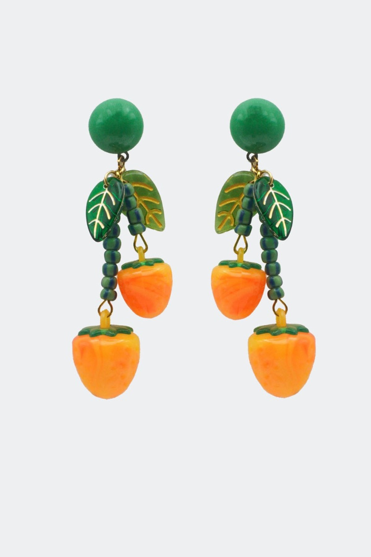 Add a splash of playful charm and zest to your everyday wardrobe with these Hanging Fruits Earrings. Bursting with vibrant orange and fresh green tones, their whimsical dangling fruit and leaf design brings a delightful dash of vintage-inspired fun to any outfit. Whether you’re channeling retro rockabilly or simply love a pop of quirky color, these earrings are your new go-to for a look that’s both bold and charming. Their lively movement and cheerful hues make them a fabulous statement piece that catches the eye and sparks a smile.
