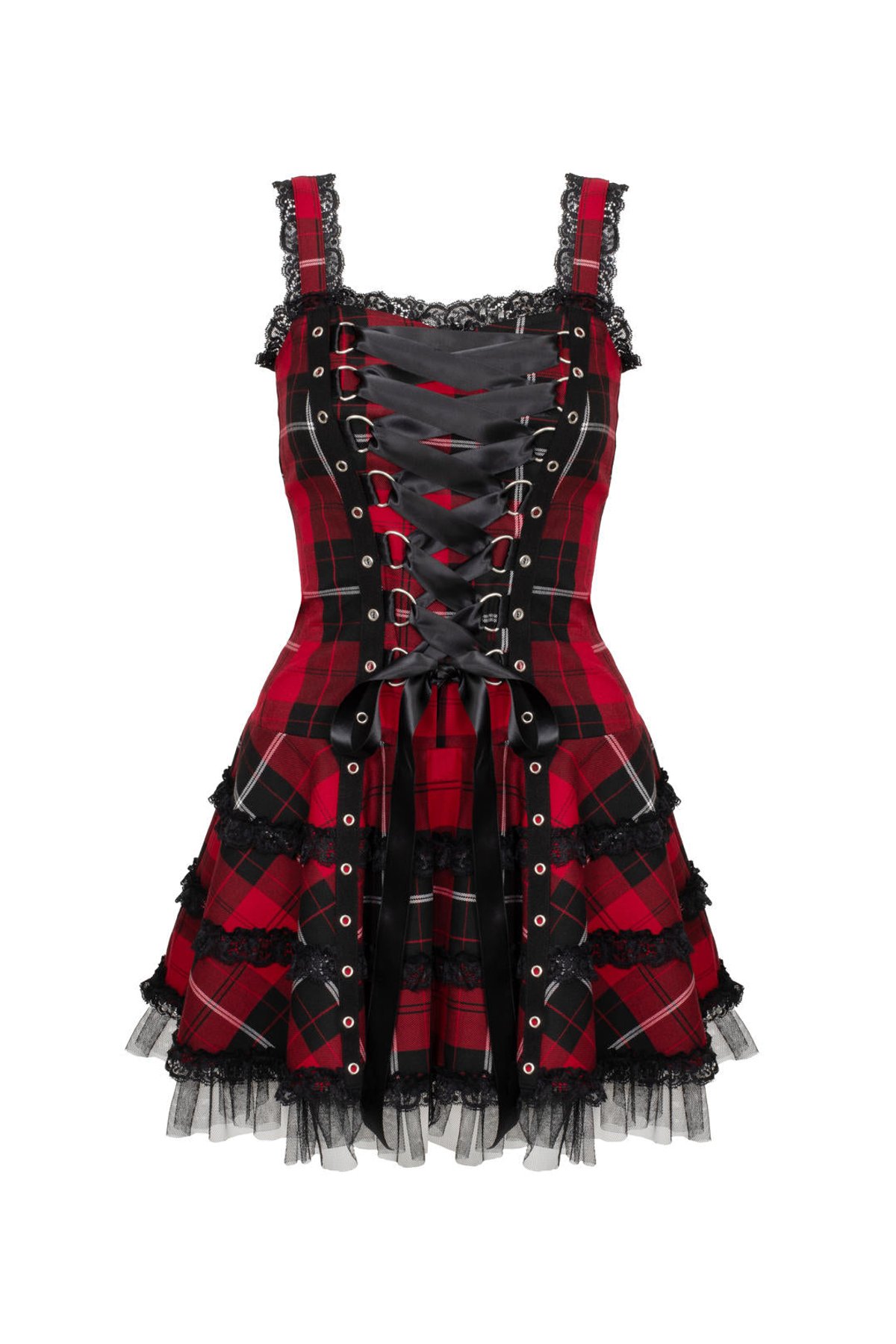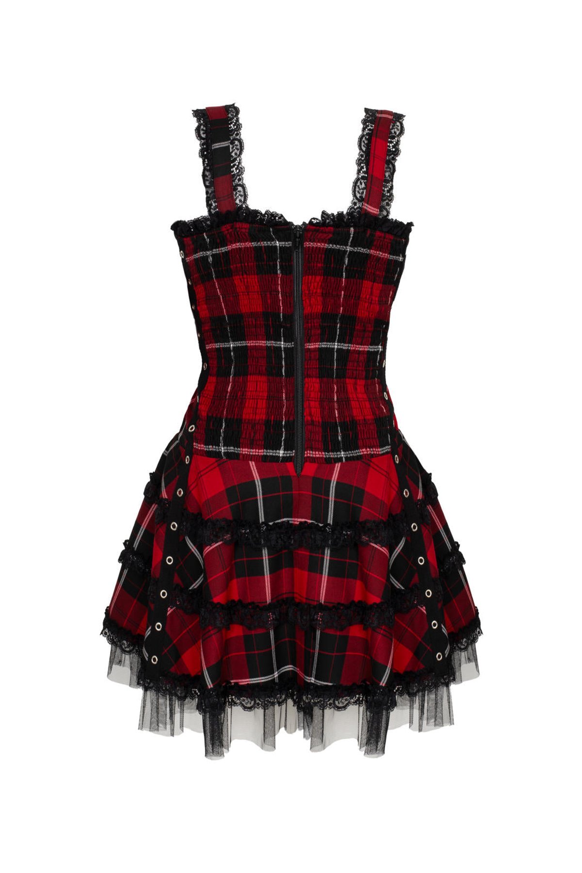 Unleash your inner rebel with the Harley Tartan Dress—where classic tartan meets a punch of punk attitude. The bold red and black pattern is a claws-down gorgeous choice for making a statement, while the playful details like button-adorned straps and black lace trim add just the right hint of mischievous charm. The fabulous 3-tier skirt with broderie anglaise lace trim offers a flirty, voluminous silhouette that’s both fierce and feminine, perfect for turning heads wherever you go. The lined black tulle underneath gives it that extra dramatic flair, making every step feel like a runway strut.