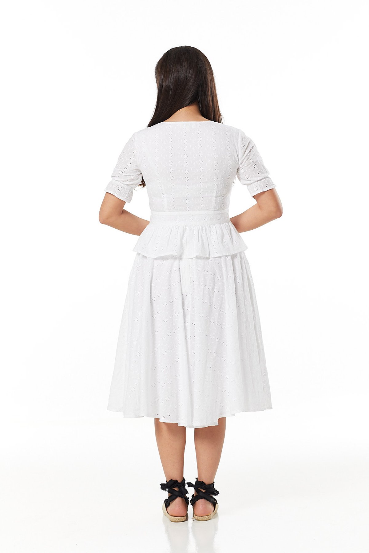 Unleash your inner vintage vixen with the Jolene White Blouse — a purrfect blend of timeless charm and modern chic. This piece’s delicate broderie anglaise fabric, sweet puff sleeves, and a flattering V-neck make it a claw-some choice for those who love to stand out with subtle sophistication. Its playful peplum detail adds just the right amount of mischief, ensuring you'll turn heads while feeling utterly elegant. Whether styled effortlessly or with a dash of retro glamour, this blouse is a wardrobe essential that’s simply irresistible.
