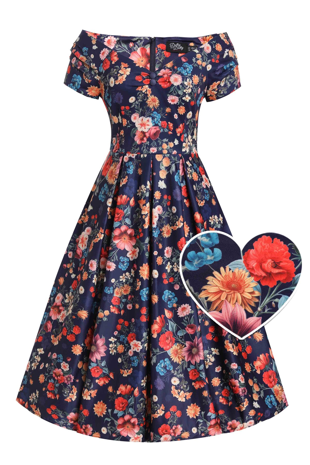 Unleash your inner vintage vixen with the Lily Blue Botanical Floral Off Shoulder Dress—an enchanting blend of classic charm and modern flirtiness. Its fluttering pleated skirt and sweetheart neckline are designed to make your curves purr with elegance, while the vibrant blue and red floral print adds a splash of bold, botanical beauty. Crafted from a soft, stretch-infused fabric, it moves with you, whether you're twirling at a garden party or stealing the spotlight at an evening soirée. This dress isn’t just pretty to look at—it’s a purrfect mix of style and comfort, with pockets for a touch of practical flair that’s as charming as you are.