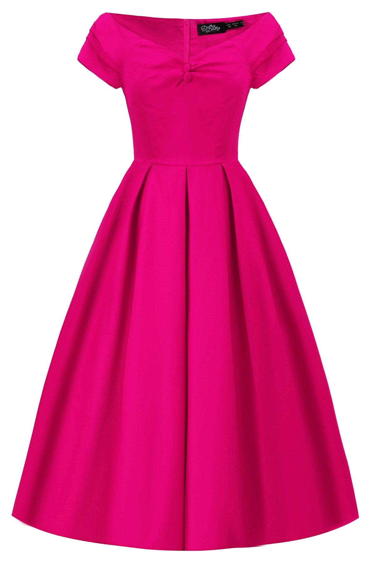 Get ready to purr with the Lily Hot Pink Off Shoulder Dress—where vintage charm meets a splash of fiery fun. This eye-catching piece is crafted to make your curves look clawsome, with its sultry sweetheart neckline and a swing skirt that’s as playful as it is chic. The vivid hot pink hue is nothing shy of electrifying, ensuring you’ll be the center of attention wherever you strut. Whether you're twirling at a garden fête or commanding the dance floor at an evening soirée, this dress is your purrfect partner in crime for turning heads.