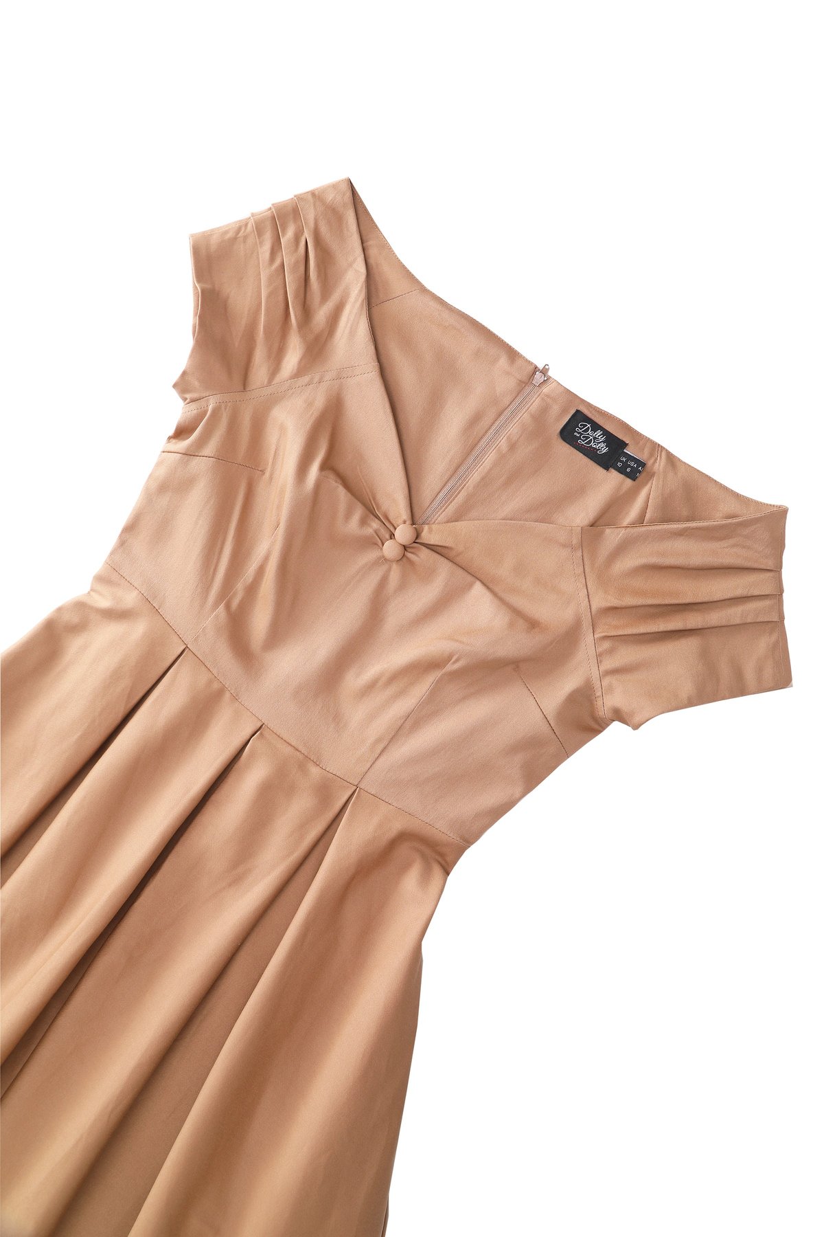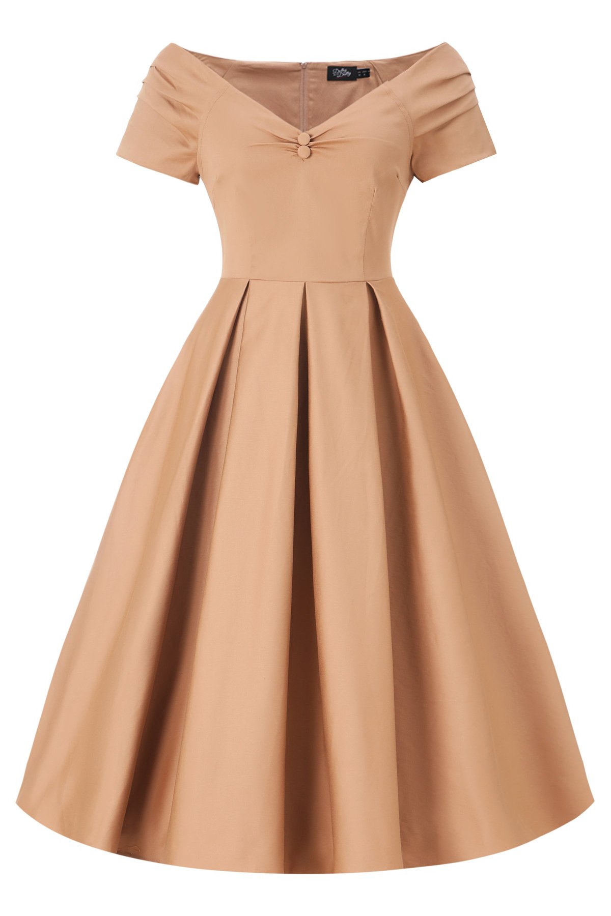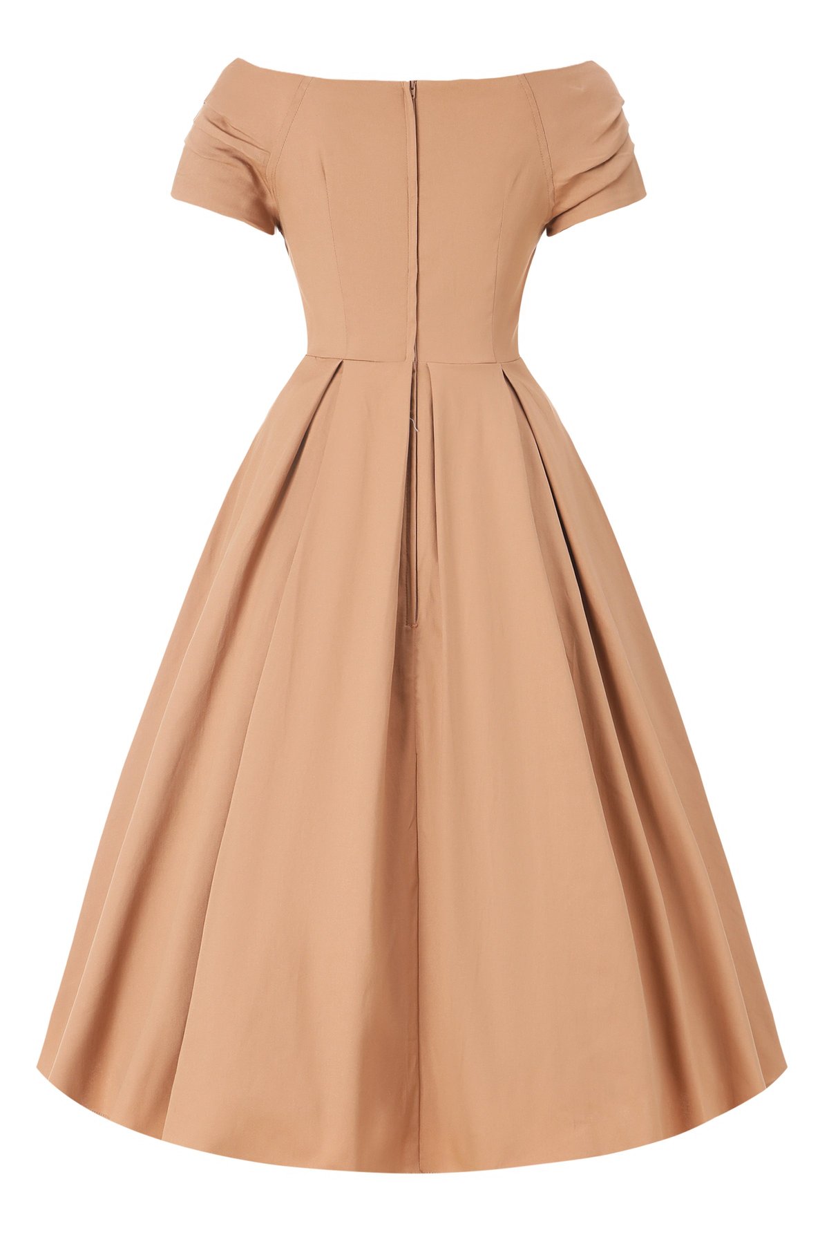 Get ready to turn heads in the Lily Khaki Cream Off Shoulder Dress—where vintage charm meets modern chic. With its flirty sweetheart neckline and a silhouette that’s both flattering and irresistible, this dress is a true showstopper. The pleated skirt adds just the right amount of playful movement, making every twirl feel as graceful as a feline in mid-pounce. Crafted from a soft cotton blend, it’s as comfortable as it is stylish—perfect for those who like to look purrfect without sacrificing ease. Whether you’re strutting into a garden soirée or slipping into an evening affair, this dress promises to keep you looking irresistibly classy with a hint of mischief.