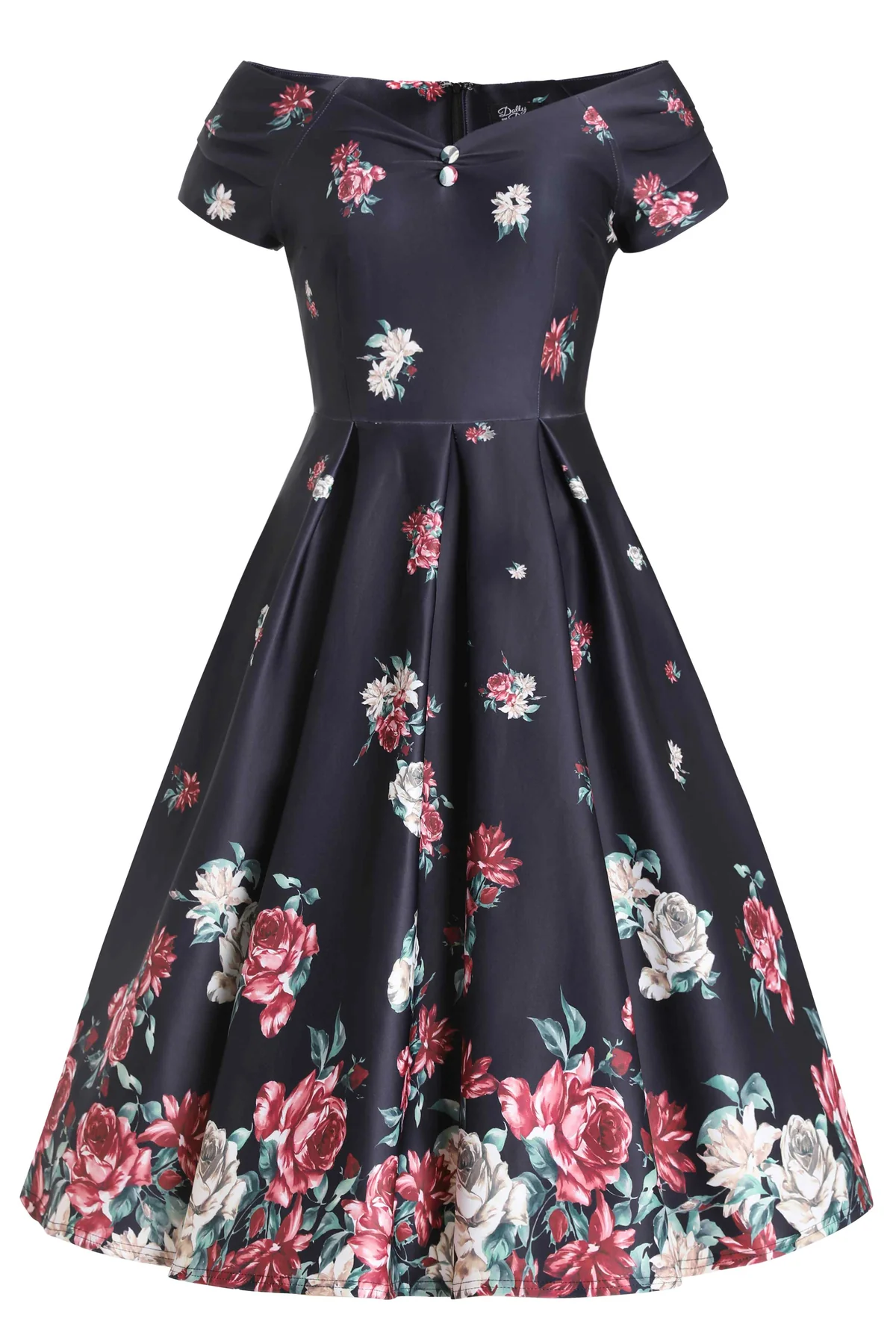 ✨💃 Embrace timeless glamour with our Lily Midnight Rose Elegance Dress. This vintage-inspired marvel is a perfect blend of sultry sophistication and old-world charm. The fit-and-flare silhouette, complemented by an off-the-shoulder design, brings your waist into spotlight, while flowing beautifully to a mid-calf hem. 🌹🖤