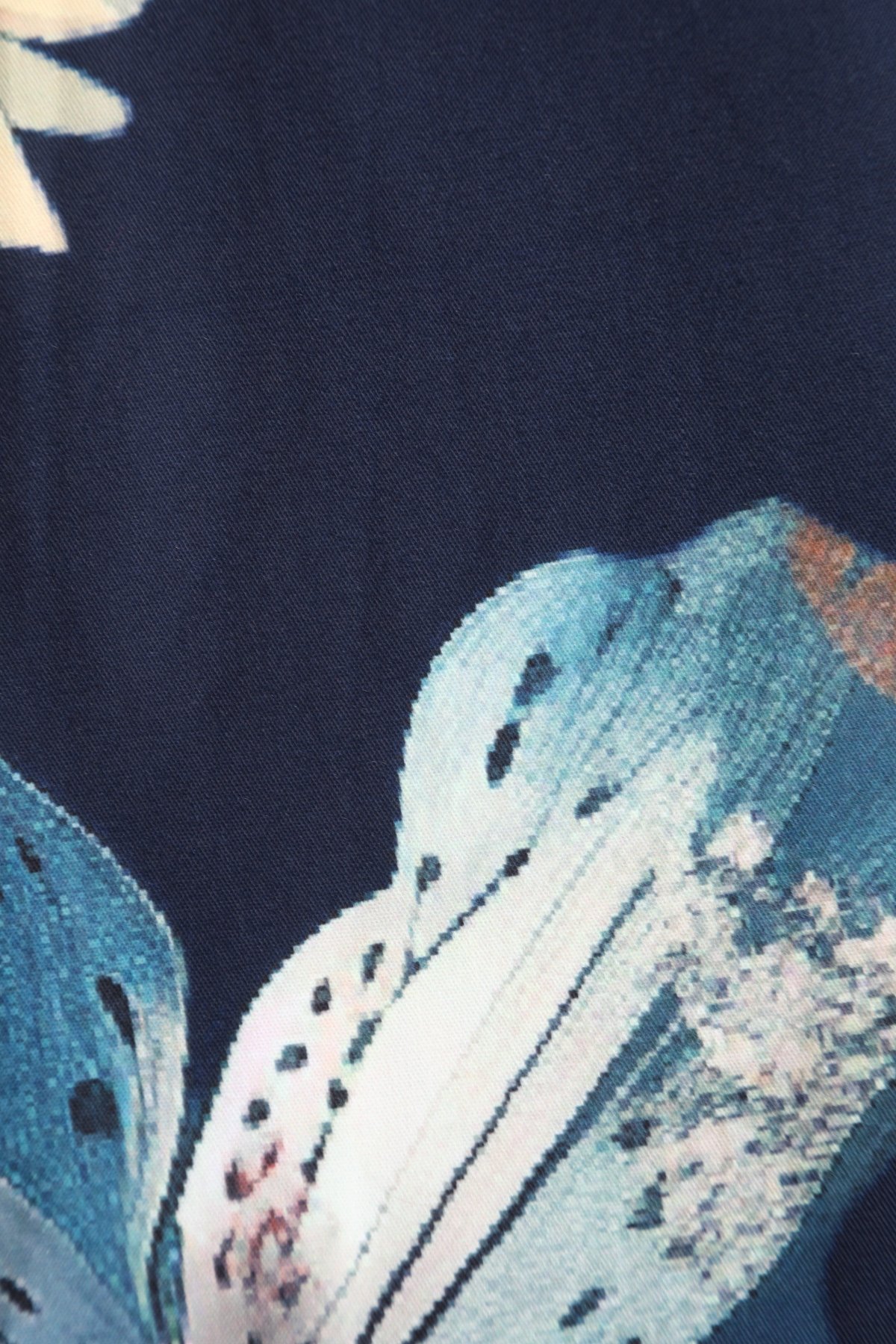 Print: Tropical Floral Print on Soft Navy Blue Fabric