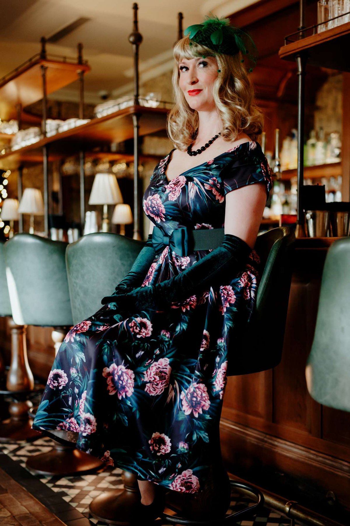 Unleash your inner vintage vixen with the Lily Off Shoulder Black Garden Swing Dress—where timeless elegance meets playful charm. The striking black background is beautifully adorned with delicate pink florals, making it a purrfect pick for those who love to turn heads with a hint of flirtation. The off-shoulder neckline adds a dash of sass, while the gathered bust and fitted waist work together to create a silhouette that's as flattering as it is fabulous. The pleated, flared skirt moves with you, giving every step a delightful sway, and those hidden side pockets? Pure practicality, darling. Crafted from a stretch blend that feels as good as it looks, this dress promises all-day comfort with effortless style. Whether you're feeling bold or simply charming, this piece invites you to express your unique, fabulous self—without ever missing a beat of feline finesse.