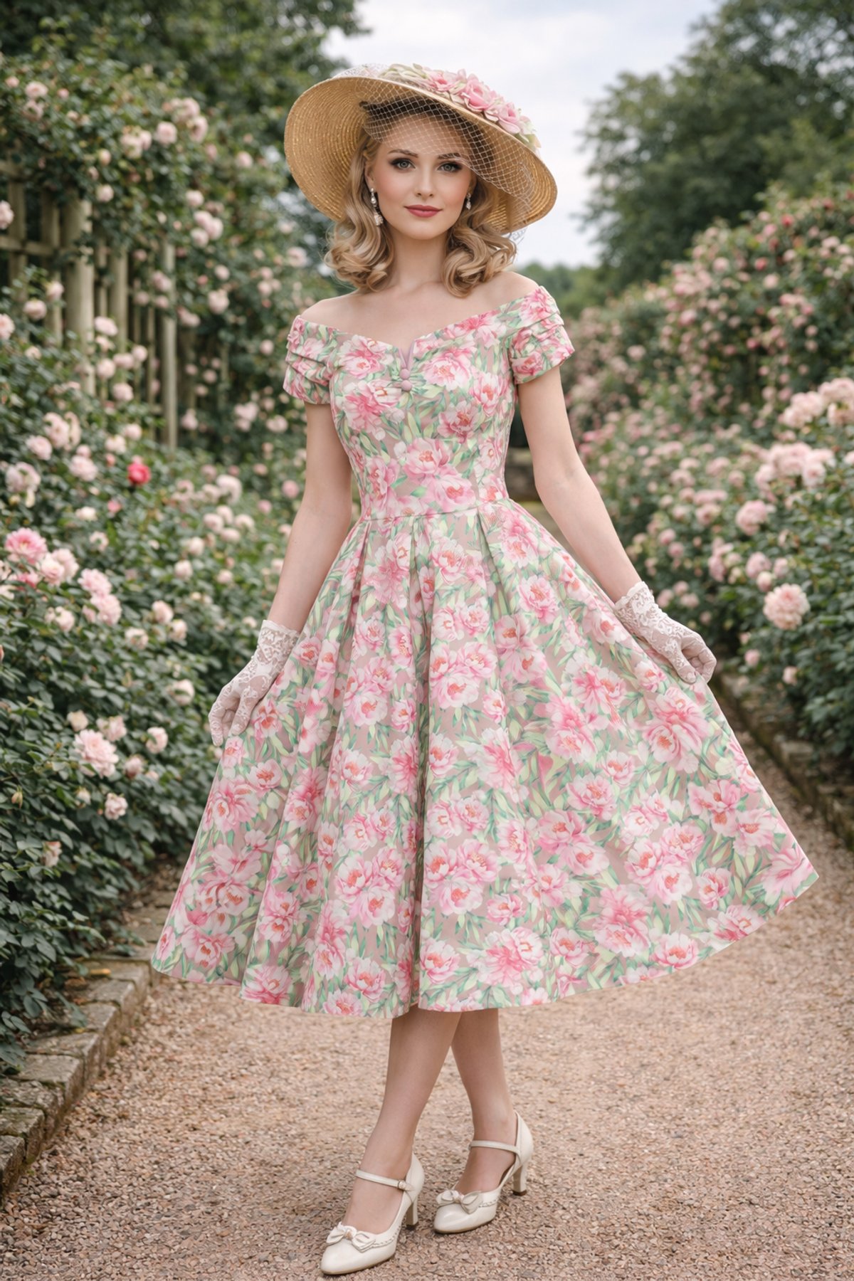 Unleash your inner vintage siren in this purrfectly charming Lily Pink Floral Off-Shoulder Dress. With its flirty off-the-shoulder silhouette, delicate floral print, and a waist that’s as fetching as a feline’s midnight prowls, this dress is a feline-approved way to turn heads. The pleated skirt adds a playful bounce to every step, while the soft, stretchy fabric keeps you comfy enough to dance the night away — or simply enjoy a leisurely afternoon in style. Its charming details, like the buttoned bust and hidden side pockets, make this piece both practical and irresistibly chic. Whether you’re feeling a dash of retro romance or a touch of garden-party glamour, this dress is your new go-to for a purrfectly polished look.