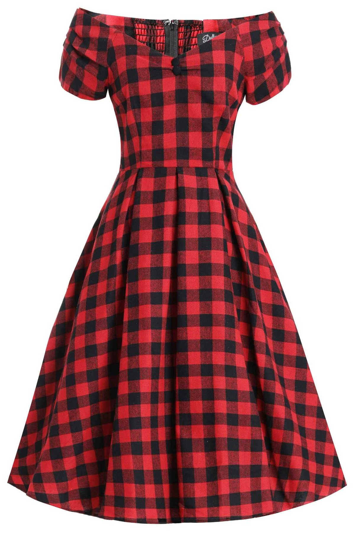 Unleash your inner vintage vixen with the Lily Red & Black Check Swing Dress—where timeless charm meets playful flair. This purrfectly chic piece boasts a bold check pattern that’s both eye-catching and effortlessly elegant. The fitted bodice hugs your curves just right, while the soft V-neckline adds a subtle flirtatious touch. The pleated skirt swings with every step, giving you that irresistible retro silhouette, and the smocked back ensures all-day comfort. Crafted from a luxurious cotton-elastane blend, this dress is as easy to wear as it is stunning—ready to turn heads wherever you strut.