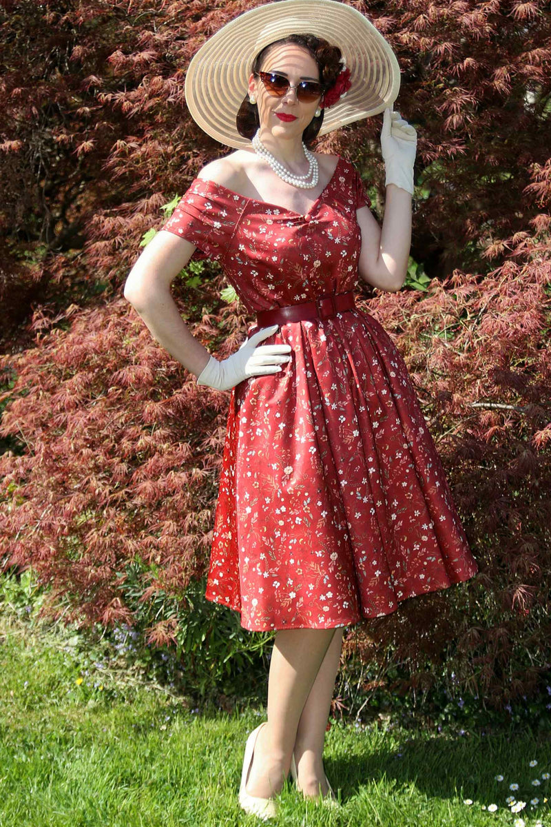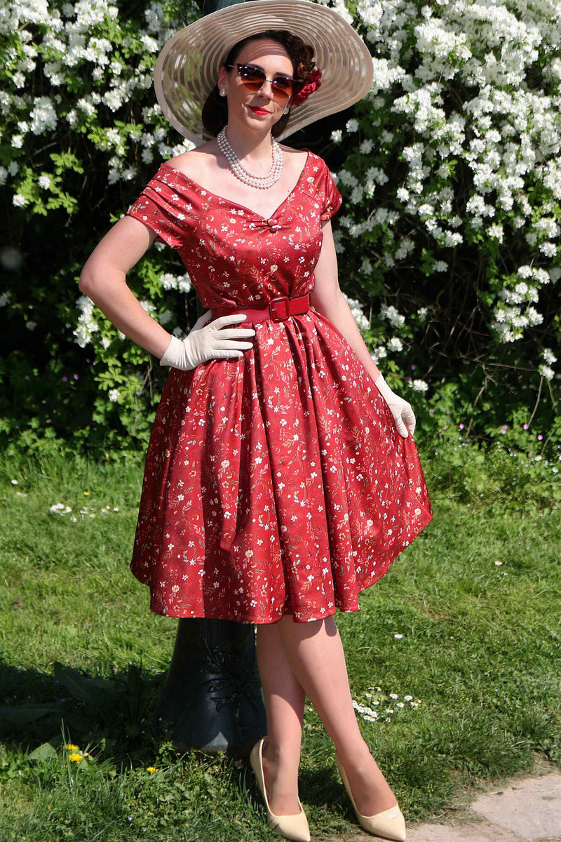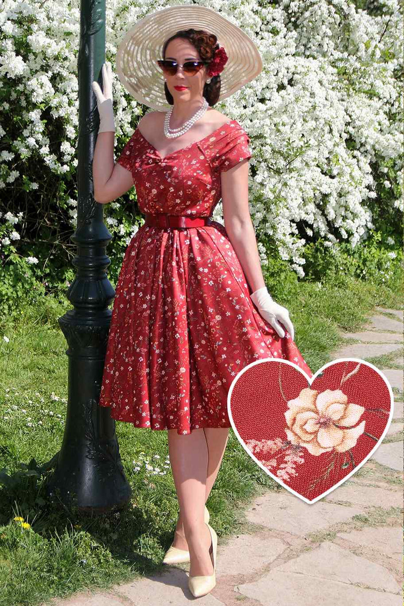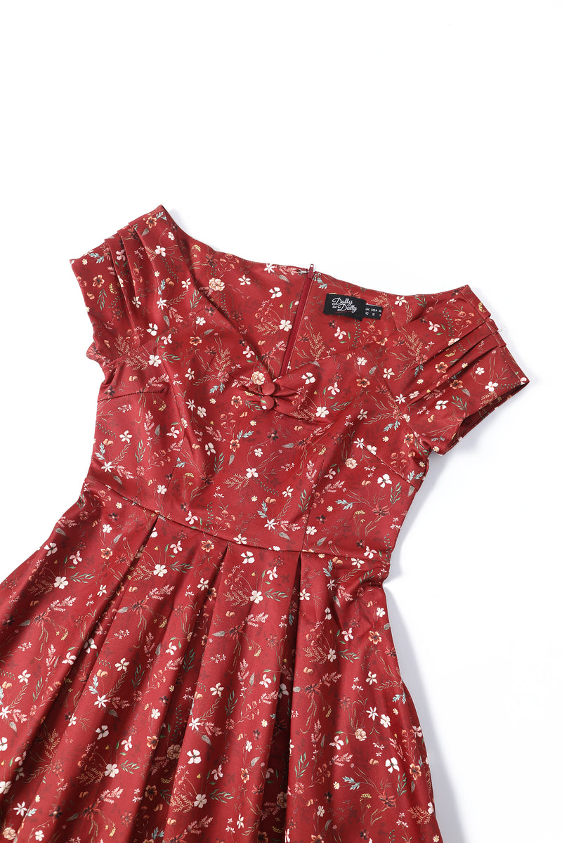 Step out in style with our Lily Red Off Shoulder Dainty Floral Print Dress! This stunning dress exudes vintage charm with its off-shoulder design and delicate floral print. Perfect for those who love to stand out from the crowd, this dress will have you turning heads wherever you go.