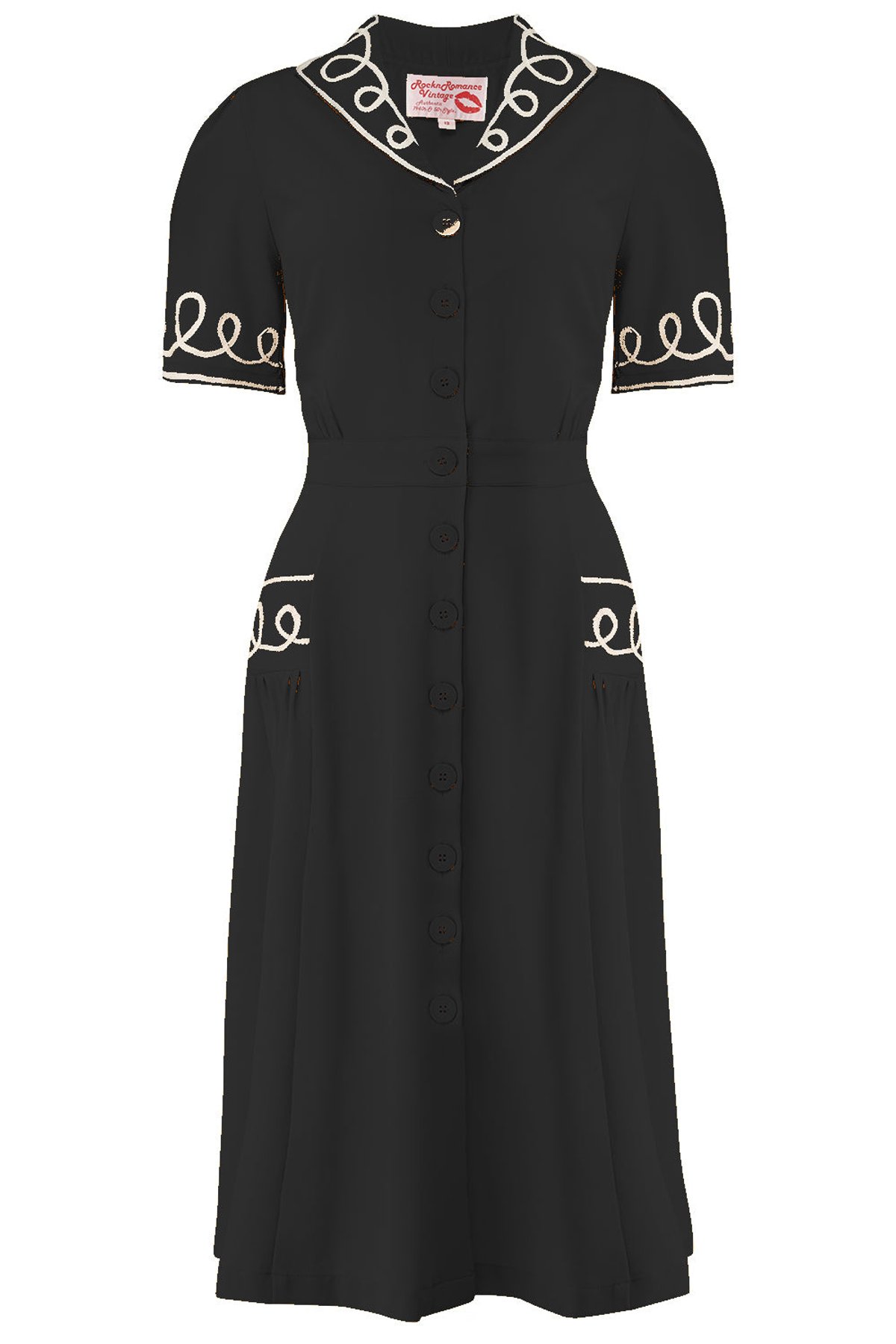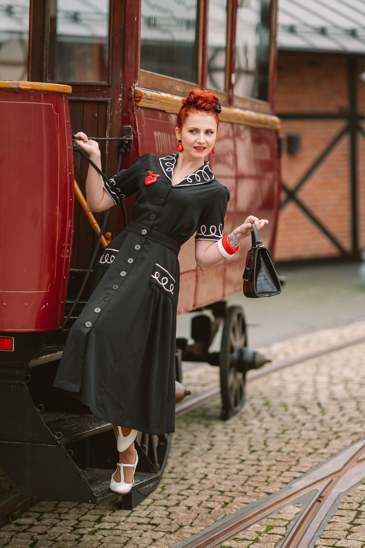 Step into the purrfect blend of vintage charm and modern flair with our Loopy-Lou Shirtwaister Dress. Its classic black hue is beautifully contrasted by crisp white ricrac trim, giving it a playful yet polished look. The elasticated waist offers a comfortable fit that flatters every figure, while the charming details add just the right touch of retro sass. Whether you're feeling chic and sophisticated or just want to add a dash of fun to your wardrobe, this dress is guaranteed to turn heads and make you feel claws-down gorgeous.