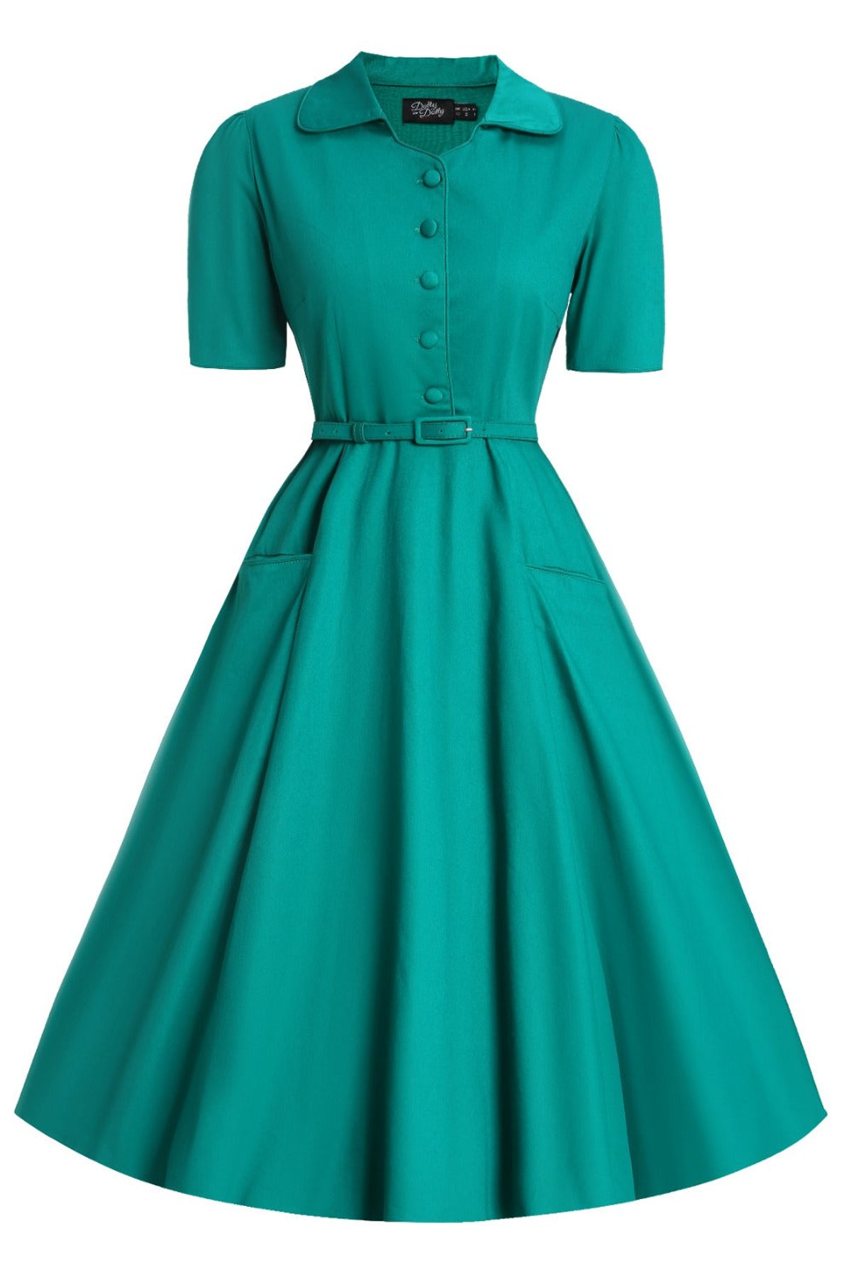 Your go-to dress for any occasion is just a click away at Kitty Darling, your beloved UK retro boutique. Simply wash between 30-40 degrees, no tumble drying – care is a breeze, darling! With our Mabel Emerald Green Shirt Dress, get ready to stun both at work and beyond. Shop today and let this vintage gem become your next wardrobe staple!🛍️