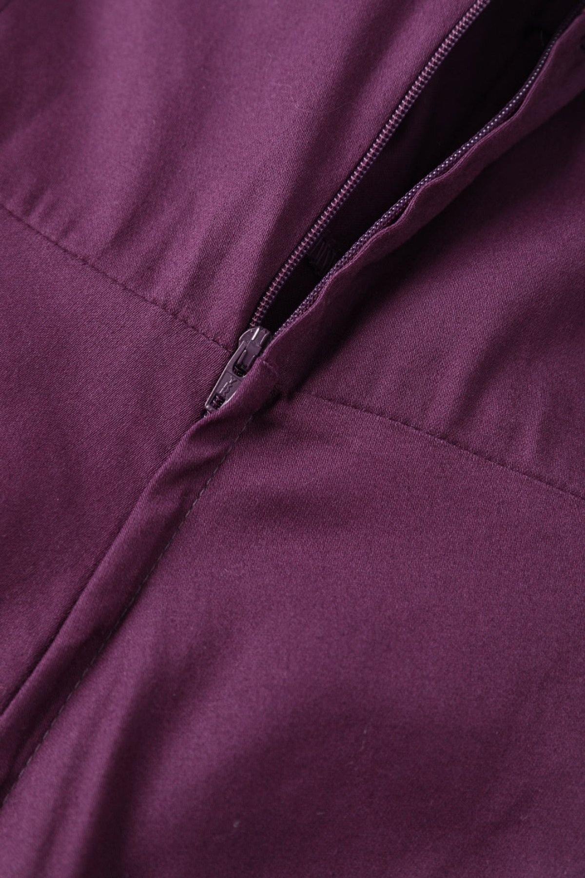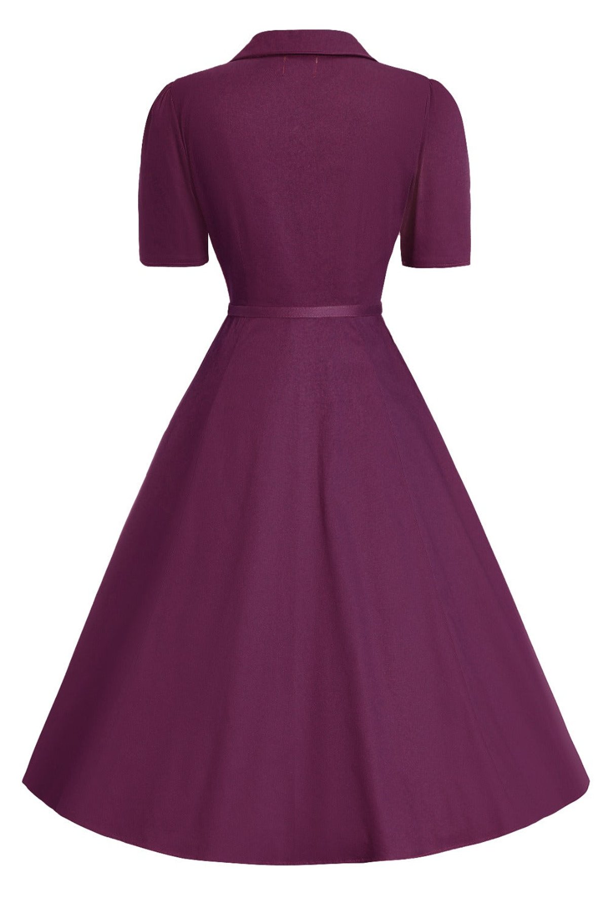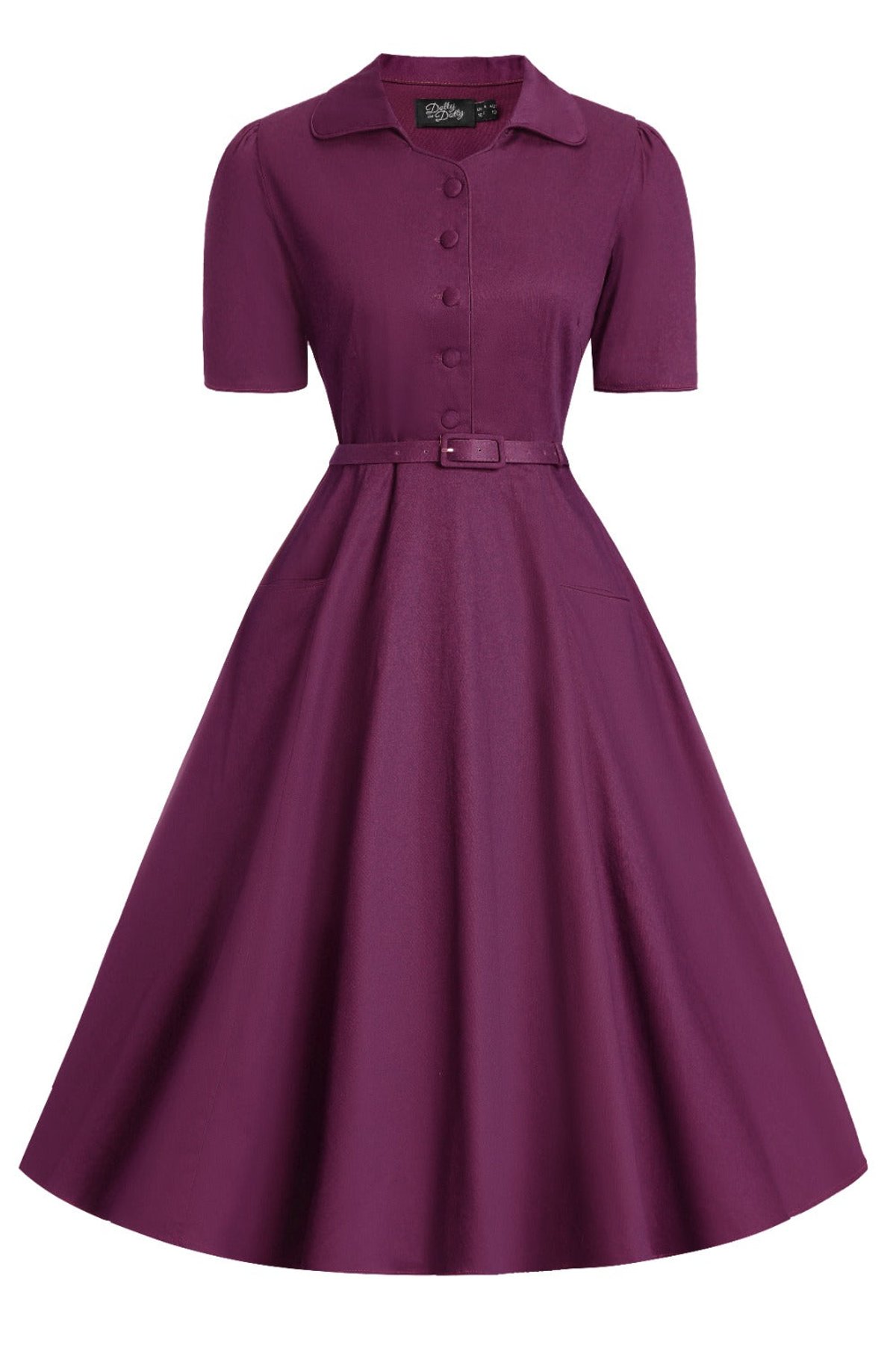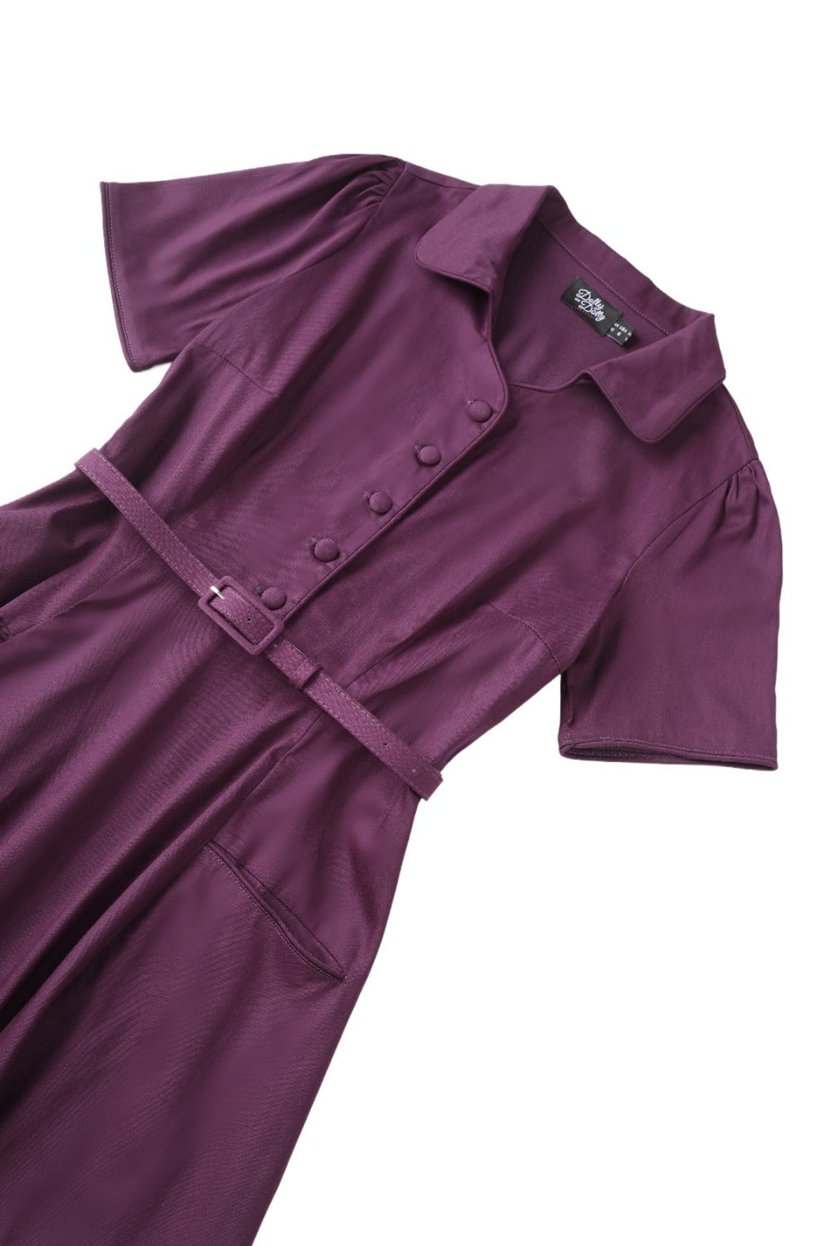 Unleash your inner vintage vixen with the Mabel Purple Shirt Dress—where classic charm meets contemporary flair. Its rich purple hue and delightful collared neckline make it an instant showstopper, while the button-down front and matching belt expertly sculpt your silhouette. The flared skirt adds a playful twirl to your stride, and the side pockets offer a practical yet stylish detail. Crafted from a comfy stretch cotton blend, this dress is as easy to wear as it is to adore — perfect for turning heads from dawn till dusk, all while feeling fabulous.
