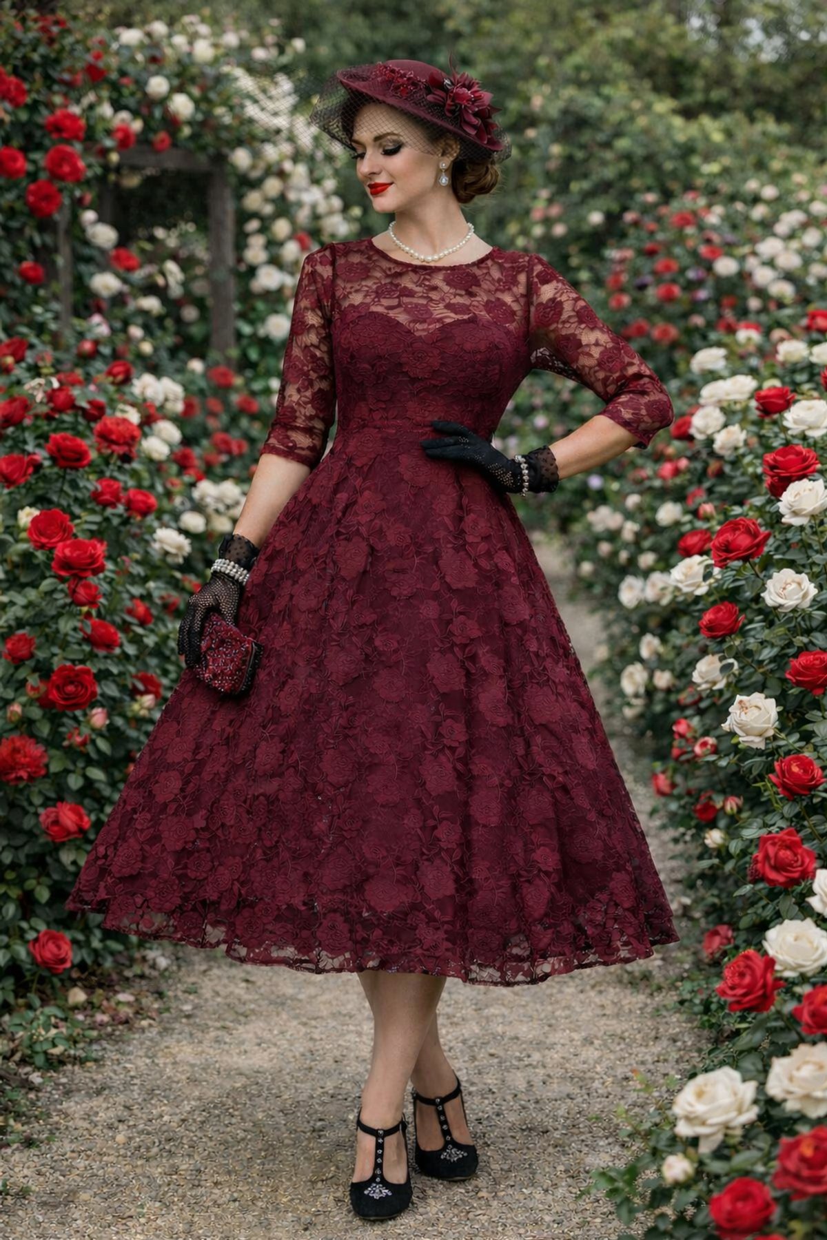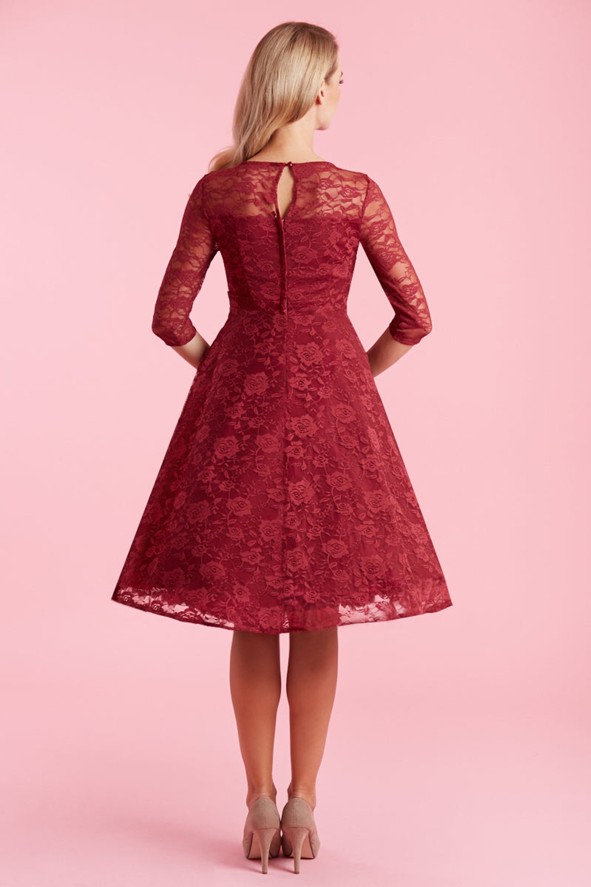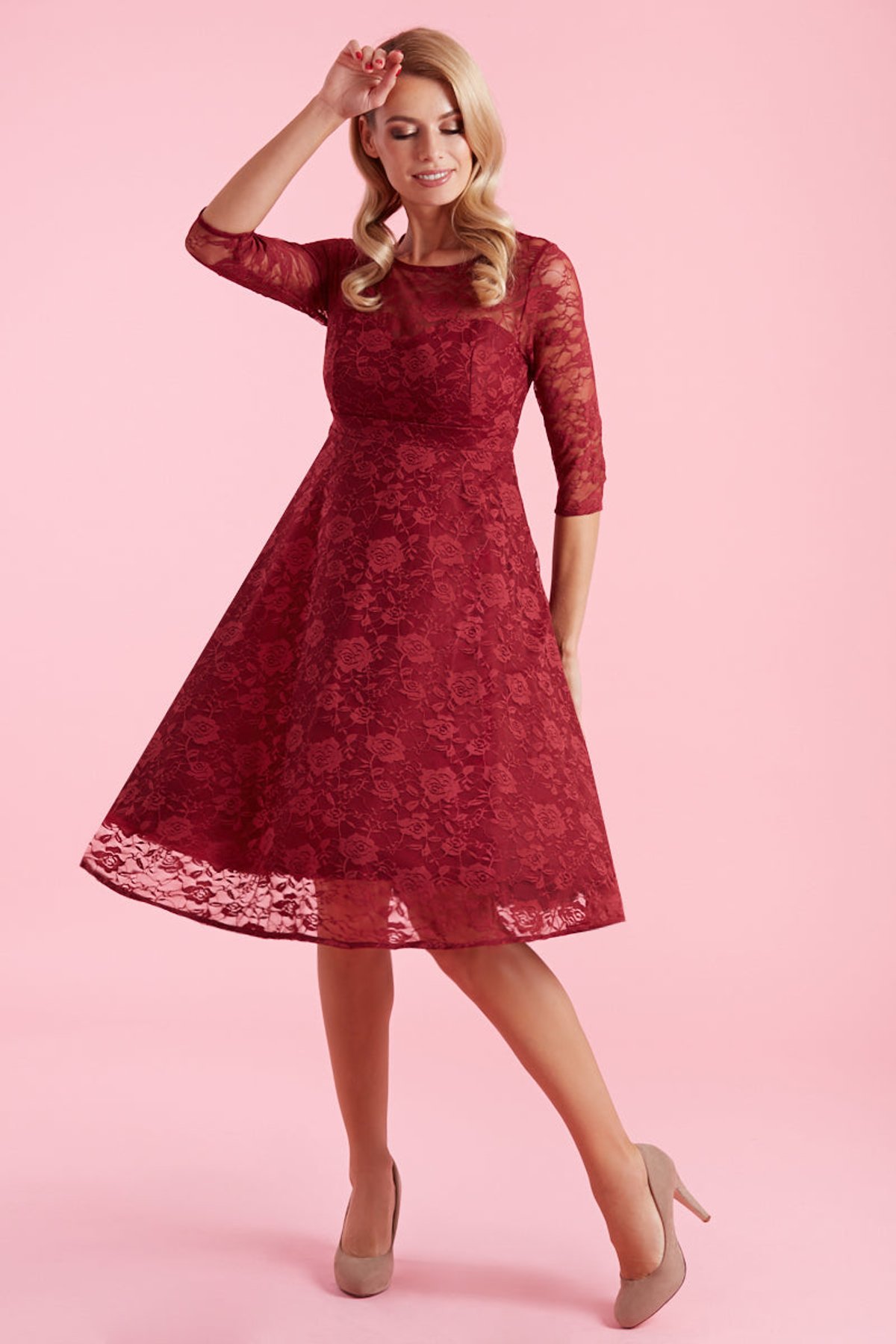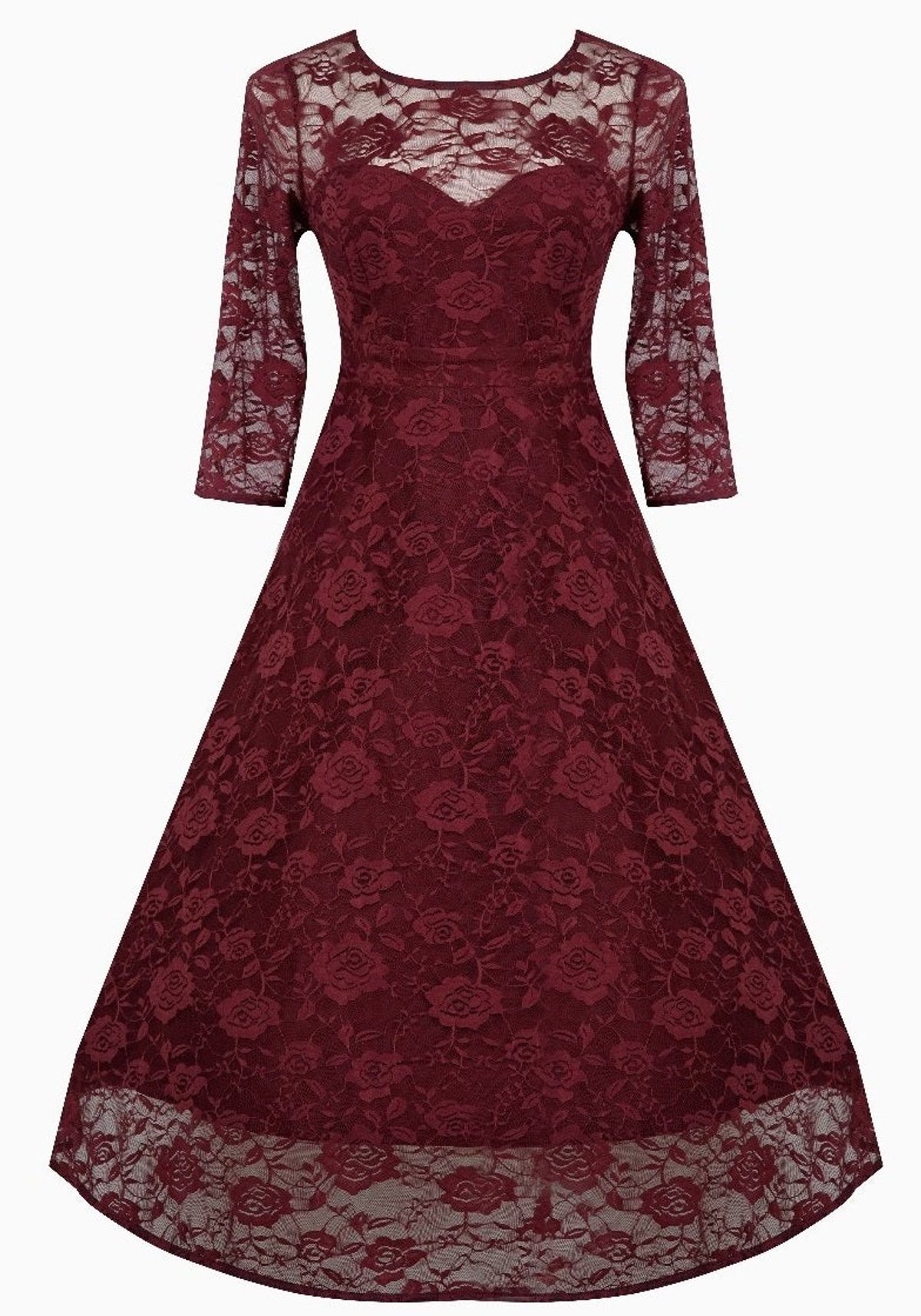 Get ready to enchant with the Madeline Long Sleeved Burgundy Lace Dress—an exquisite dance of vintage charm and contemporary pizzazz. The rich burgundy hue is as captivating as a sleek feline’s gaze, while the delicate floral lace and high-neck mesh add an alluring layer of mystery. The sweetheart lining peeks through just enough to tease, and the three-quarter sleeves make this piece both glamorous and gracefully practical. It’s a purrfect choice for those who want to turn heads and leave a trail of admiration in their wake.