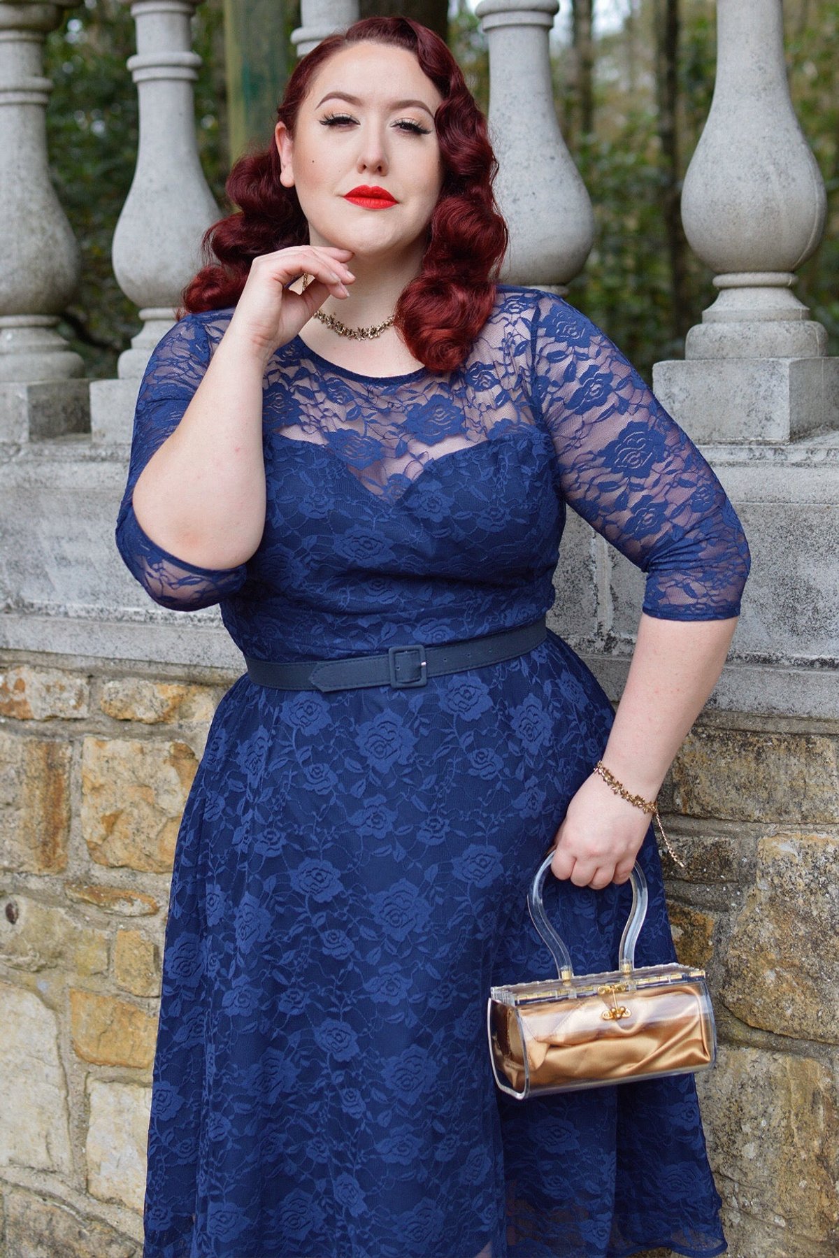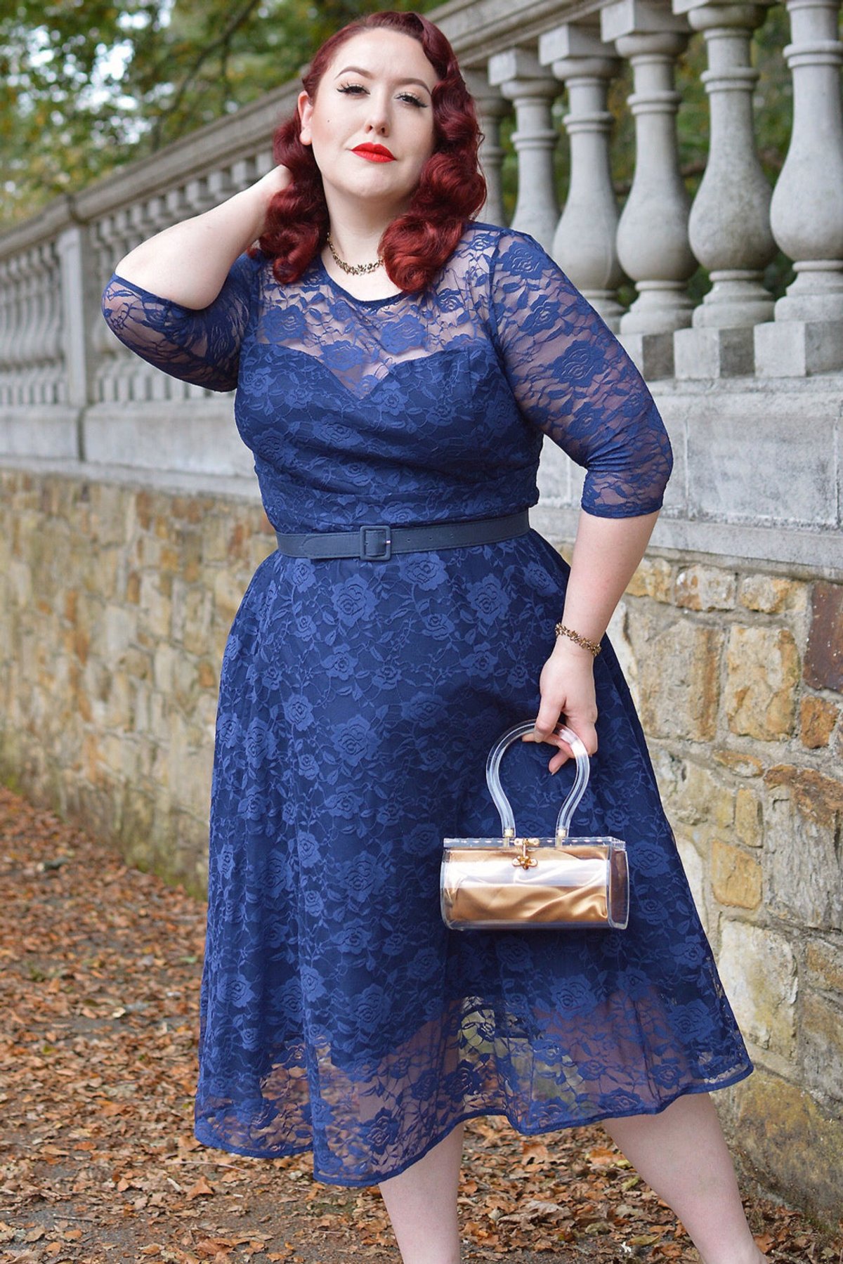 Step into the spotlight with the Madeline Long Sleeved Navy Lace Dress—a masterclass in vintage charm and modern chic. The delicate floral lace adds a whisper of romance, while the fitted bodice and flared skirt create a silhouette that's both flattering and fiercely stylish. With long sleeves that drape gracefully and a round neckline that frames your face, this dress is designed to turn heads and claws down gorgeous at every turn.