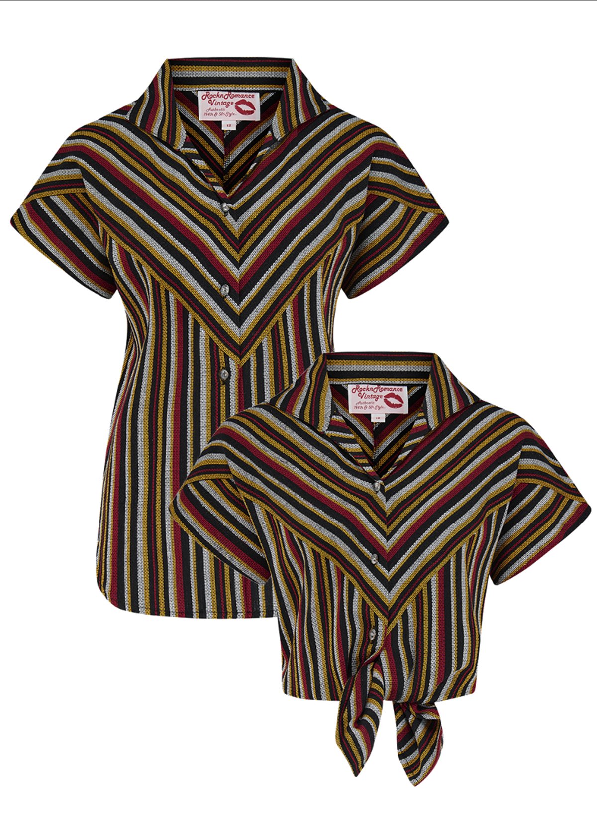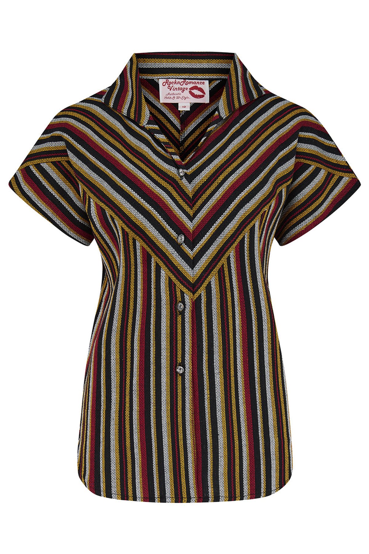 Add a pinch of pizzazz to your outfits with our Maisy Blouse Vintage Chic. 🌟 Designed for daring dames with a penchant for retro cool, this black and yellow striped beauty is your fast pass to 1950s elegance. Tuck it in for a tasteful touch or tie it up for a hint of the flirtatious. 👗
