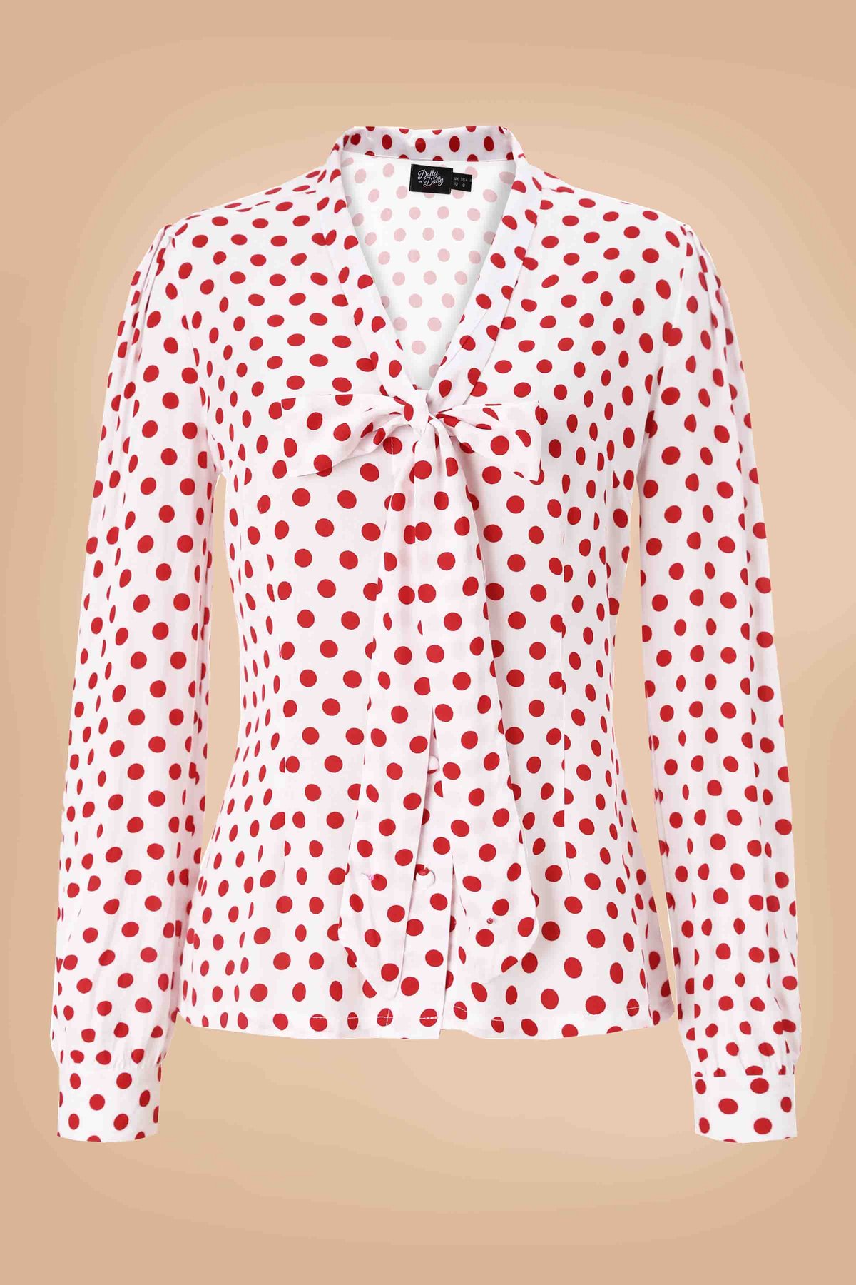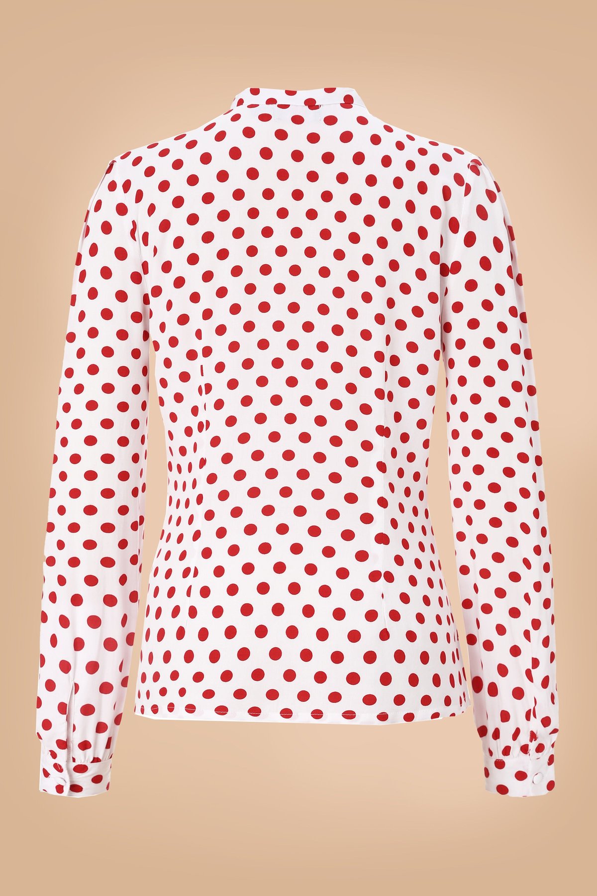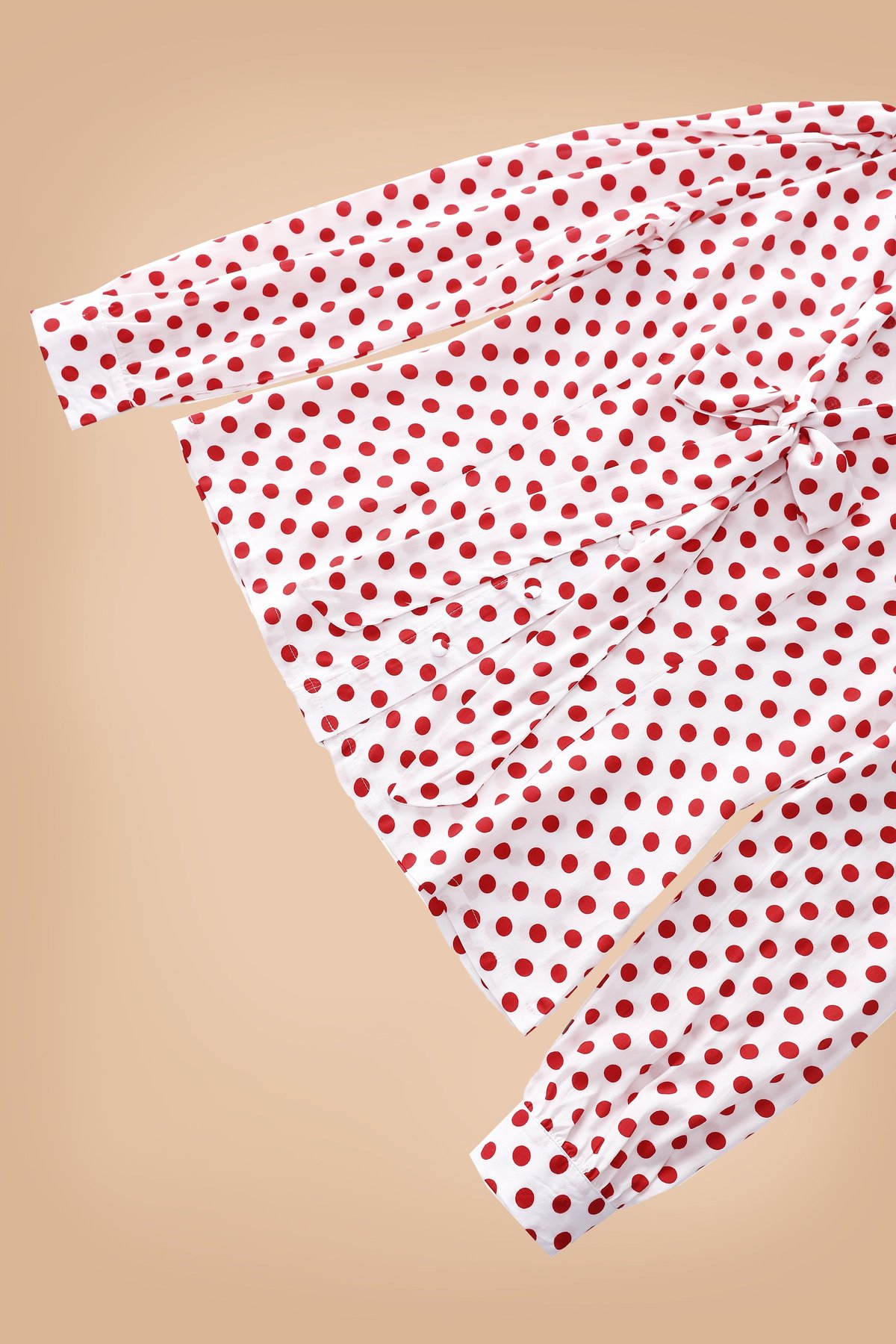 Unleash your inner vintage vixen with our Margaret Red Polka Dot Long Sleeved Blouse—where timeless charm meets a dash of bold playfulness. The crisp white fabric, sprinkled with lively red dots, is a purrfect way to add a sprinkle of retro glamour to your wardrobe. The bow-tie neckline whispers flirtation, while the long sleeves keep it chic and sophisticated. Designed to flatter every figure, this blouse is your go-to piece for a purrfect mix of elegance and sass that transitions seamlessly from day to night. Whether you're twirling at a weekend brunch or making a statement in the office, this top is a true style superstar.