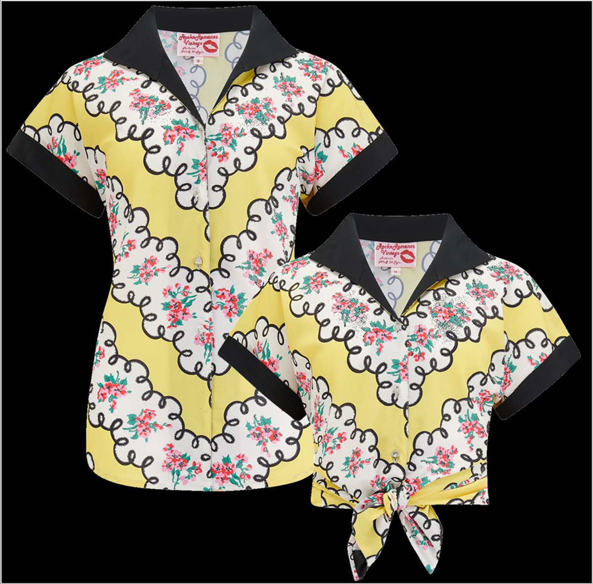 The Maria Blouse is a festival of crystallite buttons and capped sleeves, coupling the vibrant yellow and black floral pattern, it’s an embodiment of vintage enchantment.✨ The soft touch of Poly Crepe against your skin is reminiscent of authentic 1950s fashion, making it an absolute must-have for any vintage fashion lover in the UK.🇬🇧 Plus, caring for it is as carefree as the era it represents – a quick 30-degree wash and it’s ready to rock n roll.🎸