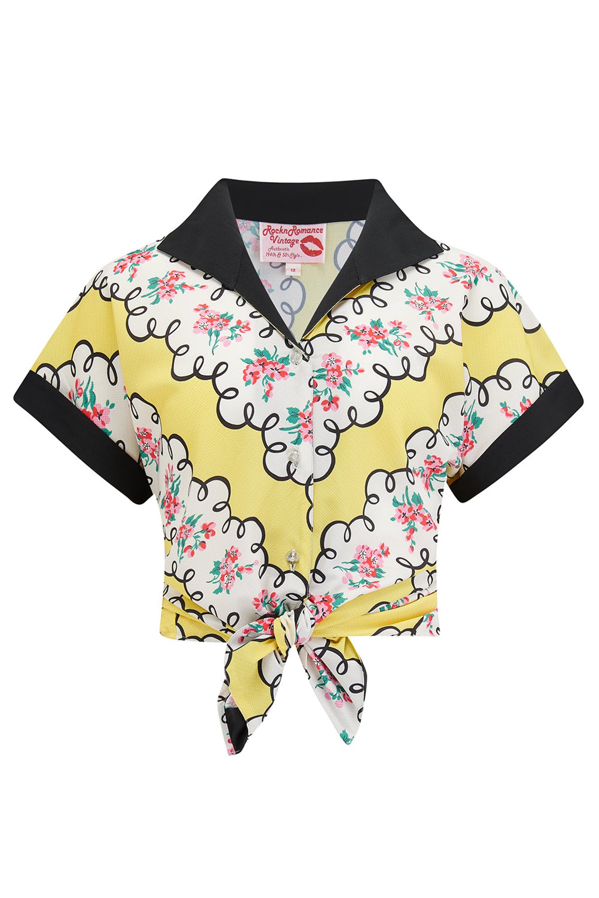 Tuck in or Tie Up Maria Blouse in Daydream Print Authentic 1950s