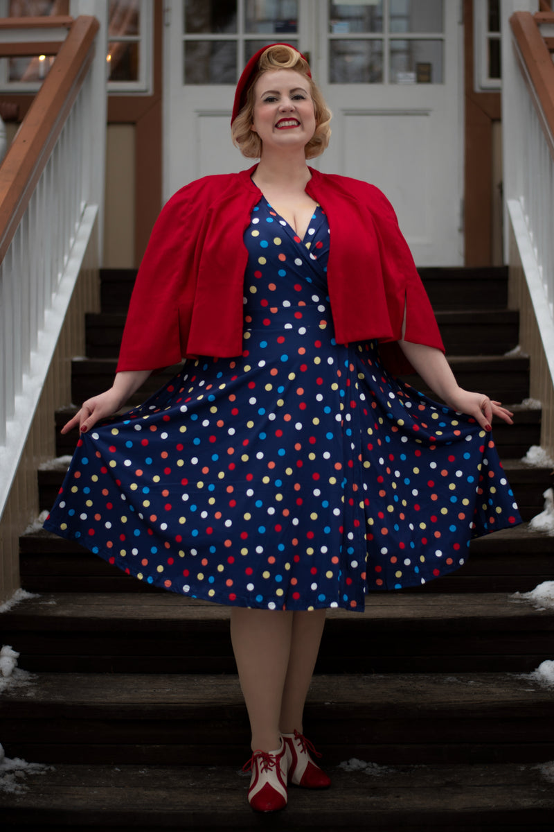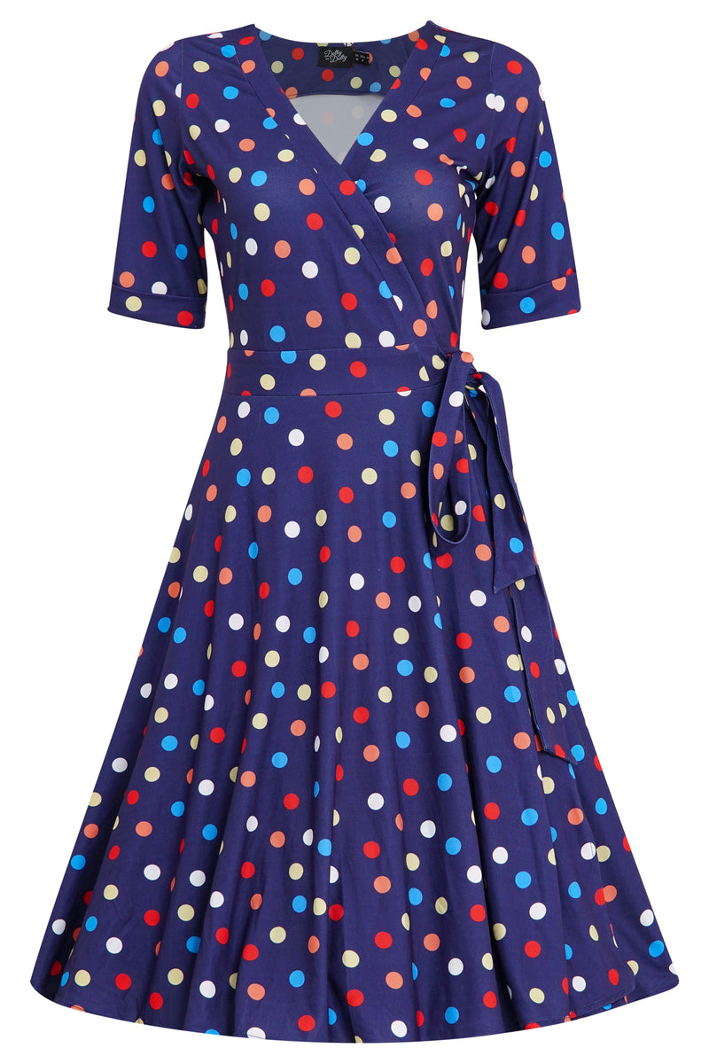 Matilda Colourful Polka Dot Wrap Dress  Shop now at Kitty Darling