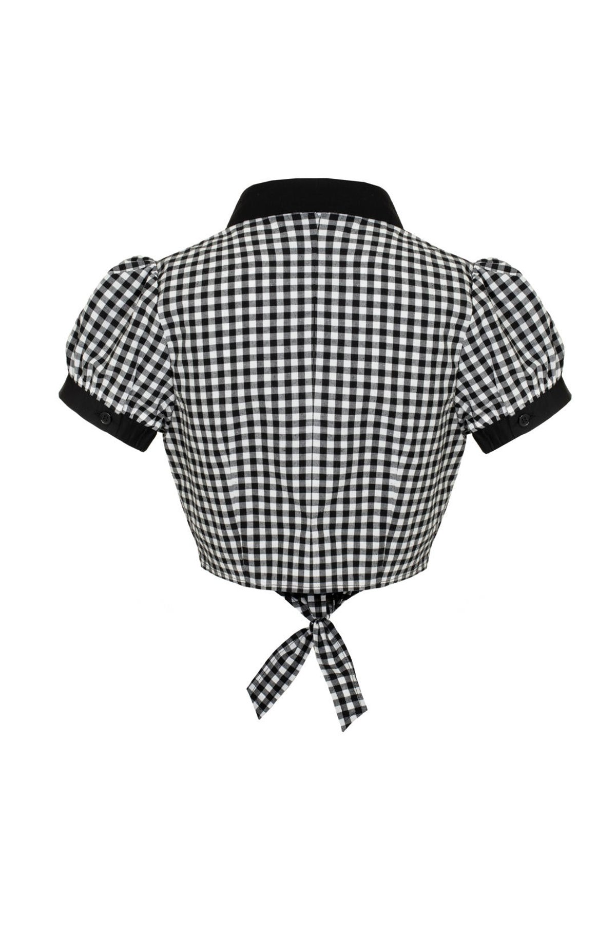 Unleash your inner vintage vixen with the Mel Blouse—a purrfect blend of retro charm and modern chic. The playful gingham check, paired with cheeky puff sleeves and a sleek stand-up collar, makes every outfit irresistibly claw-some. The heart pocket whispers sweet nostalgia, while the black piping and tie-front buttons add a dash of sophisticated flair. Crafted from a comfy cotton-elastane blend, this blouse fits just right, hugging curves or draping effortlessly over your favourite high-waisted trousers. Whether you’re feeling playful or polished, this piece is sure to have you looking claws-down gorgeous.
