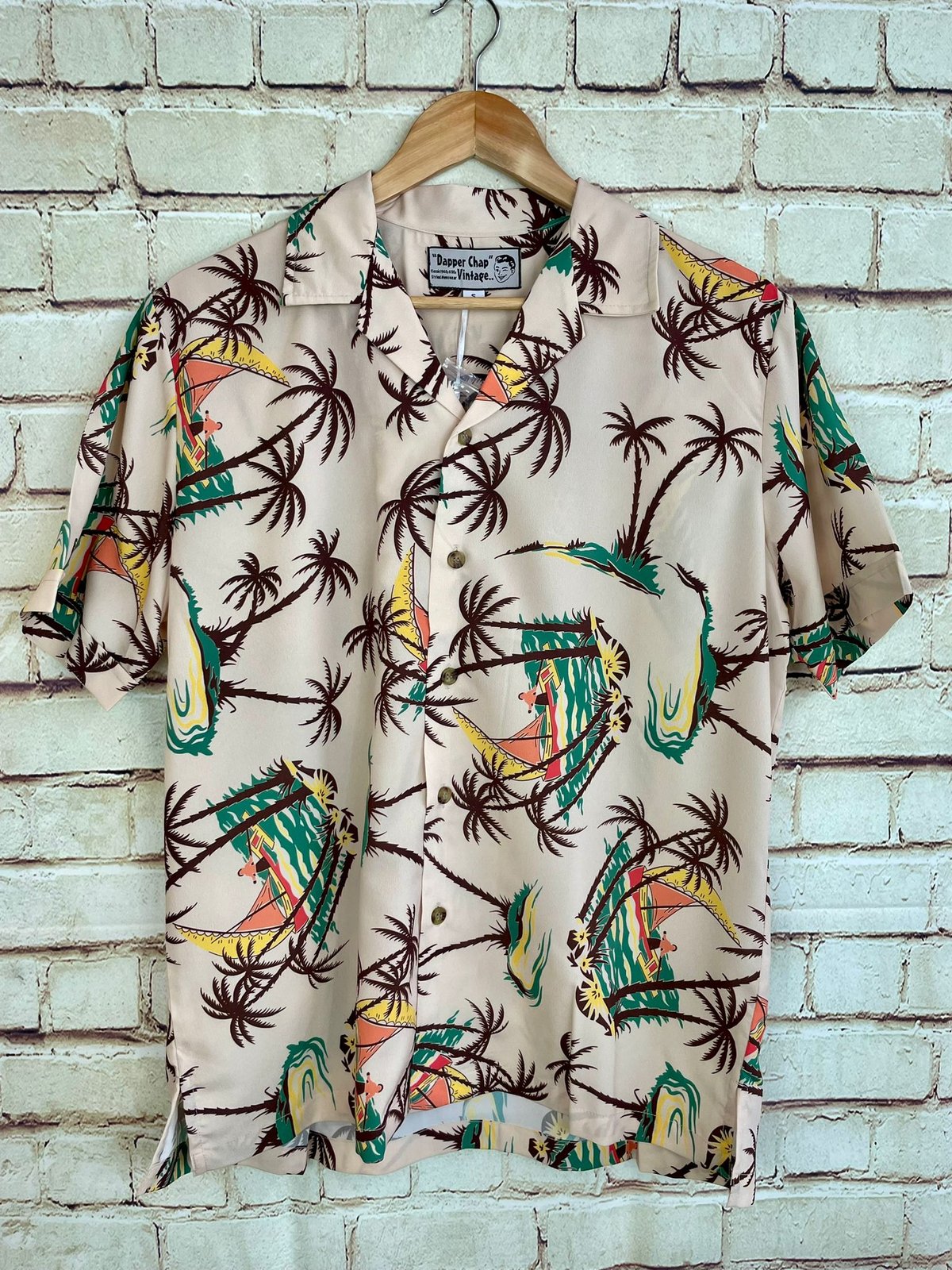 Mens Cooper Short Sleeved Casual Hawaiian Shirt In Tahiti Print.. 1950s Sport Shirt