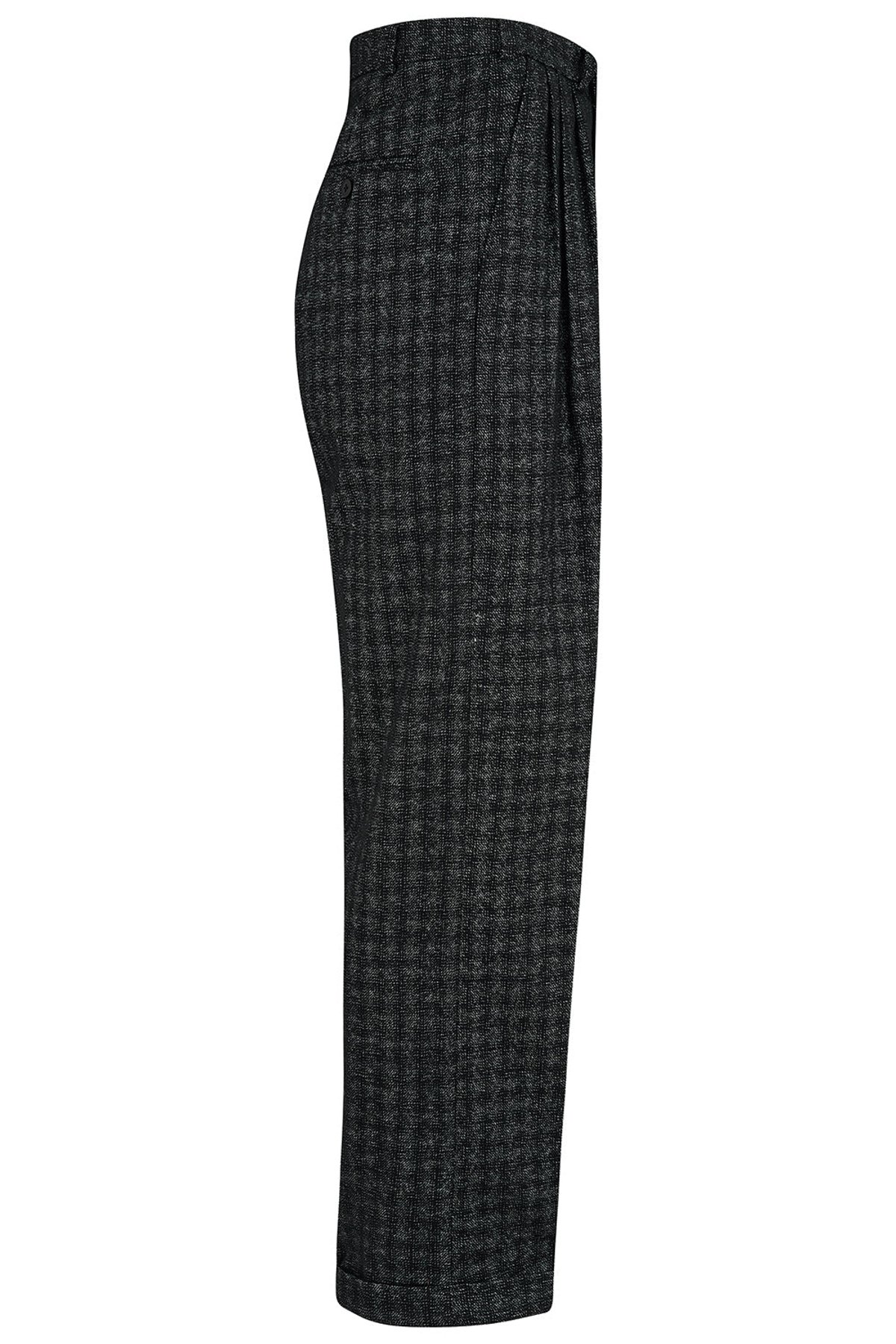 Step into the swingin’ era with these mens Hudson New York style 1950s peg trousers—where vintage charm meets modern appeal. The sleek black atomic fleck pattern adds a touch of playful sophistication, while the triple pleats and relaxed fit at the top give you that iconic 50s silhouette. Crafted from lightweight wool, they’re built for comfort without sacrificing style, making them a true showstopper for any occasion. Whether you’re channeling rockabilly vibes or just craving a dash of retro cool, these trousers are your purrfect partner in crime.