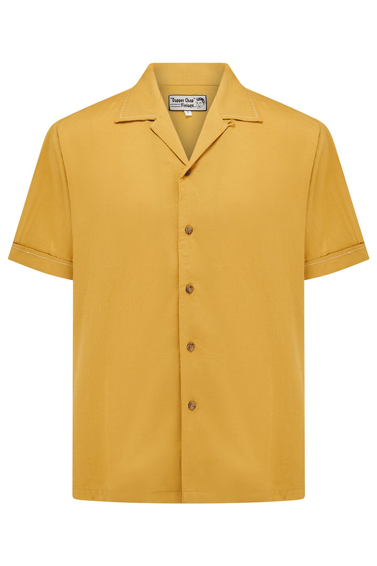 Unleash your vintage-inspired charm with this dashing mustard short-sleeved shirt, brought to life by its striking contrast saddle stitch detailing on the collar, sleeve caps, and back yoke. Designed for those who dare to stand out, this piece blends retro swagger with modern comfort, thanks to its lightweight viscose slub weave fabric. Whether you're channeling your inner rebel or just craving a look that’s both timeless and fresh, this shirt is a paw-sitive choice to elevate your style game.