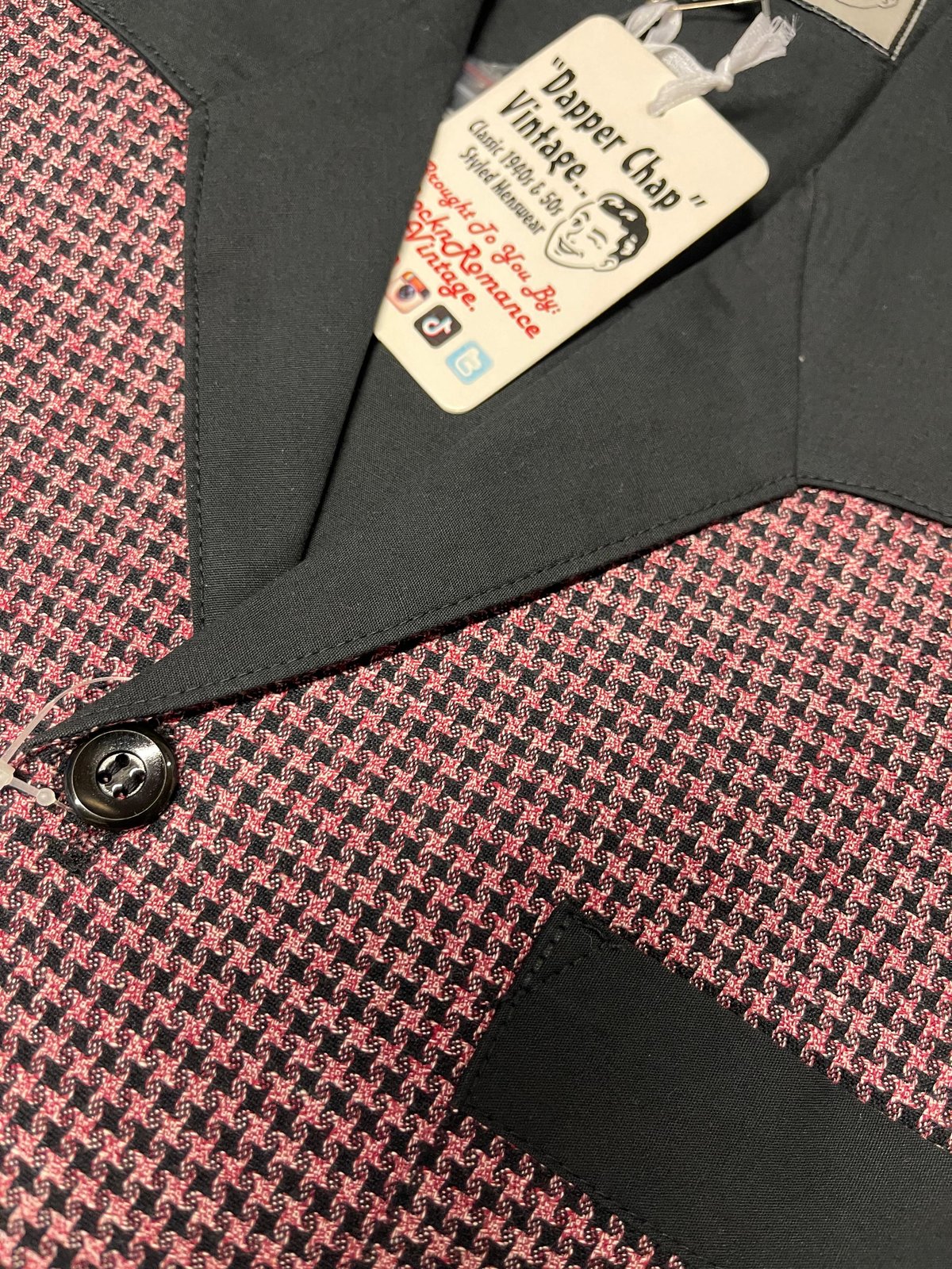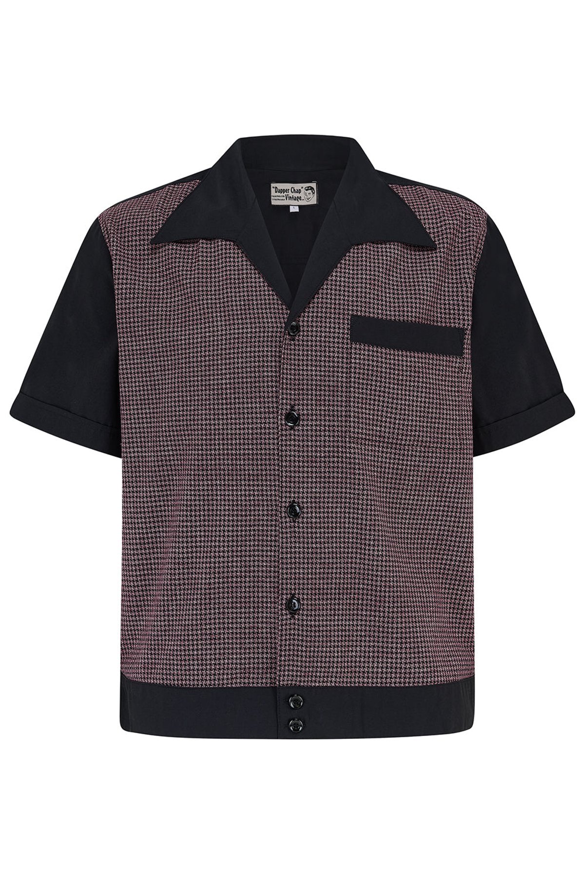 Unleash your inner rebel with this purrfect blend of vintage charm and rockabilly edge. The Benson Banded Hem RocknRoll Shirt drips with 1950s flair, featuring a playful pink and black micro houndstooth pattern that’s as bold as your attitude. Crafted from 100% cotton, it’s as easy to wear as it is eye-catching — perfect for making a statement without saying a word. The banded hem adds a subtle twist, giving you that effortlessly cool silhouette, whether you’re twisting the night away or just showing off your claws-down gorgeous style.