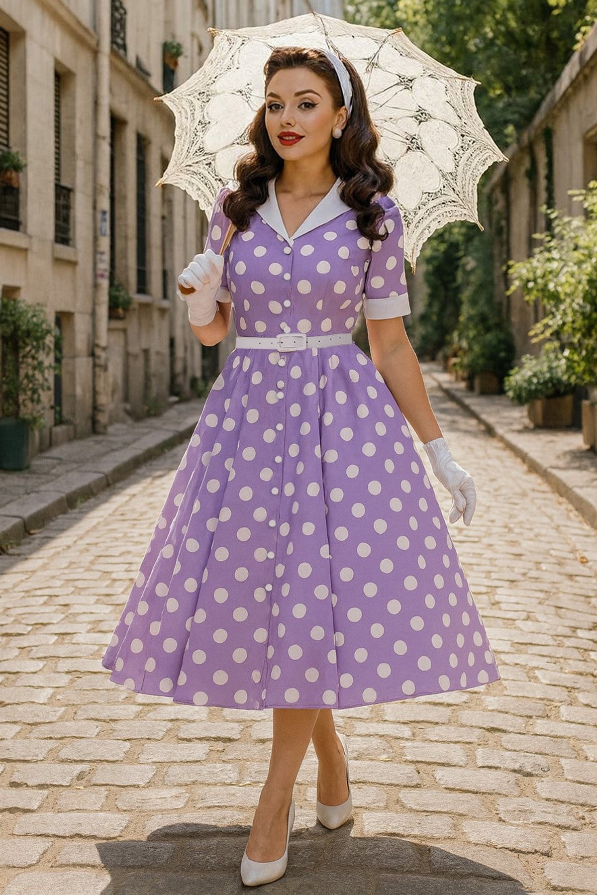 Don’t wait, grab this adorable lilac polka dot dress now and bask in the nostalgic charm that only Kitty Darling offers. 🌸🛍️ 💃👗