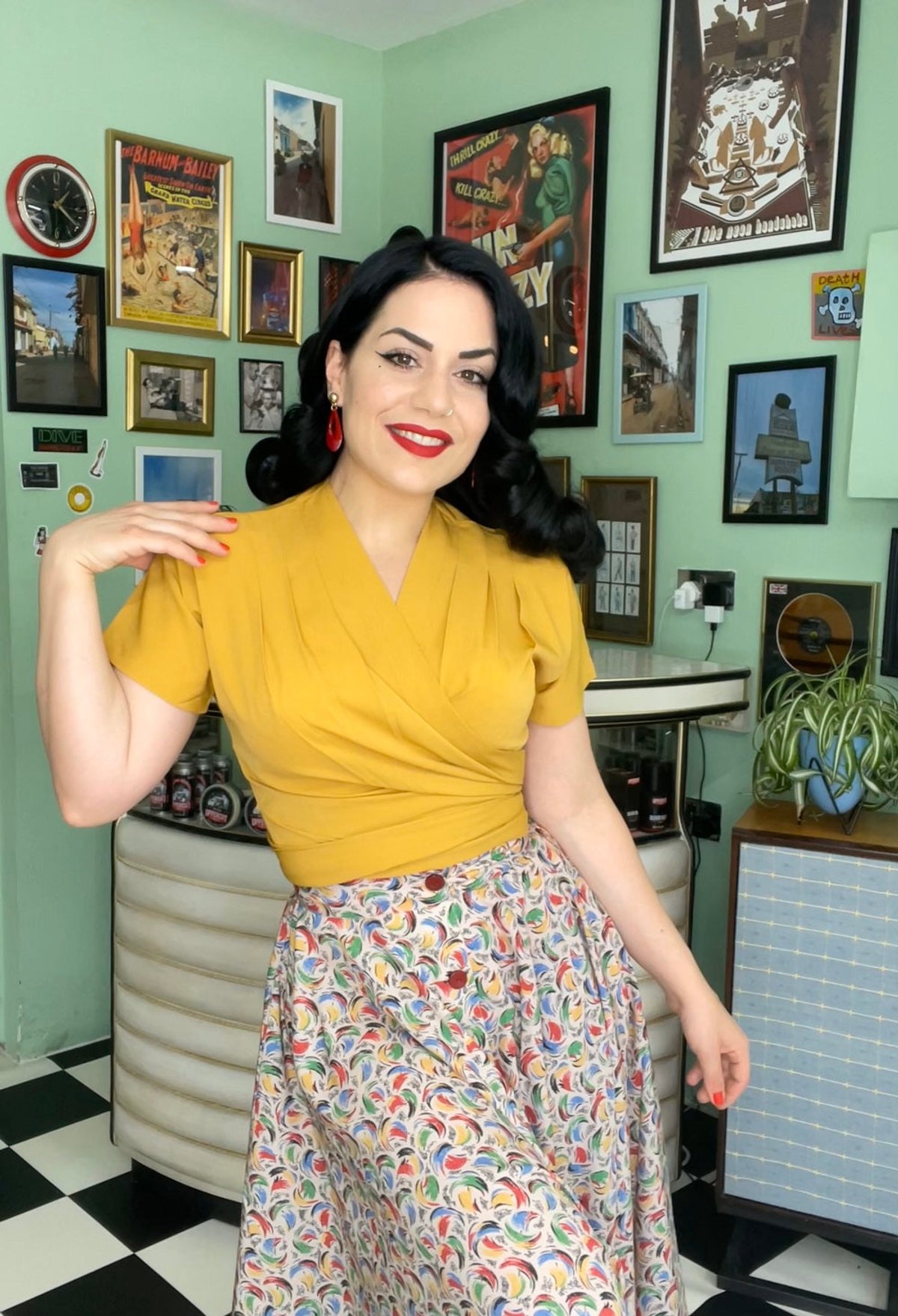 For a chic, feminine finish, pair this beauty with a high-waisted skirt or sleek trousers and add a delicate necklace that hints at vintage elegance. Ladies can enhance the retro vibe with a wide-brim hat or some statement earrings—think of it as the cat’s whiskers of accessories. Gentlemen, consider pairing it with tailored trousers and a sleek blazer for a dapper yet charming look. No matter your style, remember: a pop of bold lipstick or a hint of feline-inspired jewelry will make your outfit truly claws-down gorgeous.