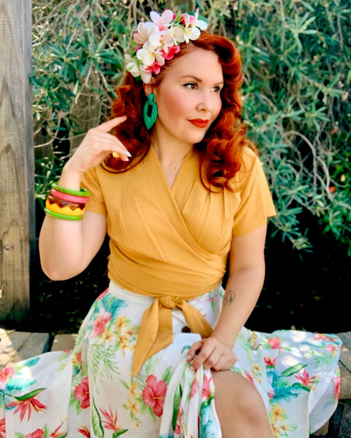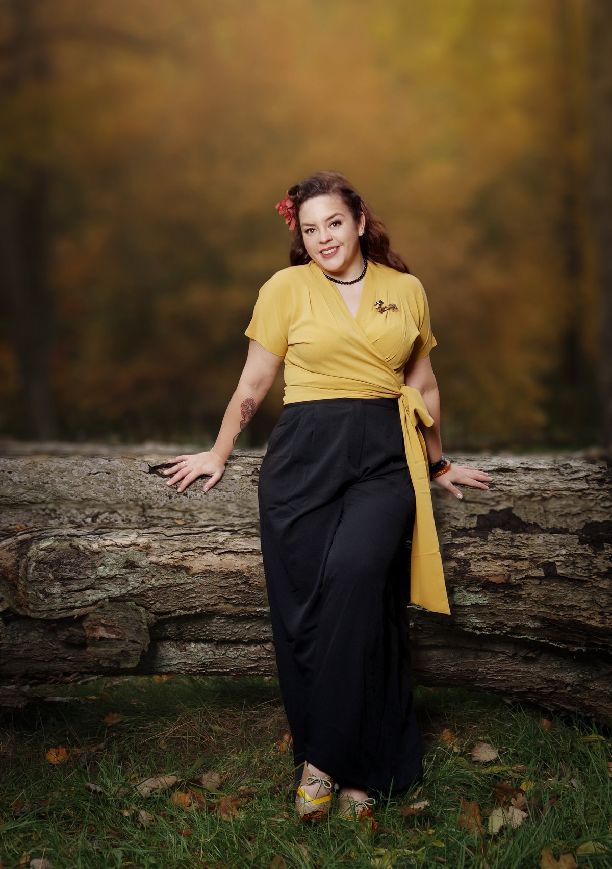 Get ready to turn heads in the Darla Short Sleeve Wrap Blouse, a true purrfect blend of vintage charm and contemporary flair. The sunny mustard hue is a cheerful splash of retro sophistication, while the wrap silhouette offers a flattering, customizable fit that’s as comfortable as it is chic. The front pleats add just the right touch of playful elegance, making this piece a versatile wardrobe staple that can be dressed up or down with ease. Crafted from luxurious Poly Crepe, it drapes beautifully and feels delightfully soft—an effortless way to add a dash of vintage glamour to your everyday wardrobe.