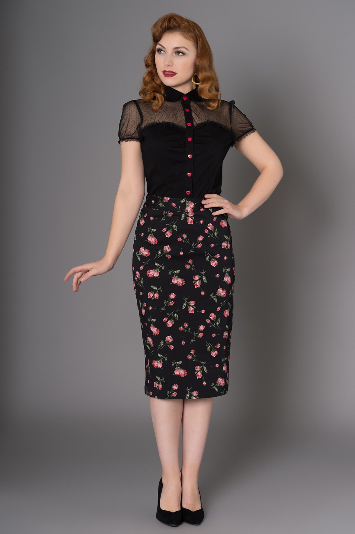 Unleash your inner feline fashionista with the Natasha Skirt, a purrfect blend of vintage charm and modern allure. Its high waisted silhouette, adorned with a flirtatiously fresh pink tulip pattern on sleek black, offers a look that's as timeless as it is teasing. The fitted pencil cut hugs your curves with claws-down gorgeous precision, making it a versatile piece that effortlessly transitions from classic to contemporary style. Crafted for women with a keen eye for playful sophistication, this skirt is a true wardrobe staple for those who love to leave a stylish pawprint wherever they go.