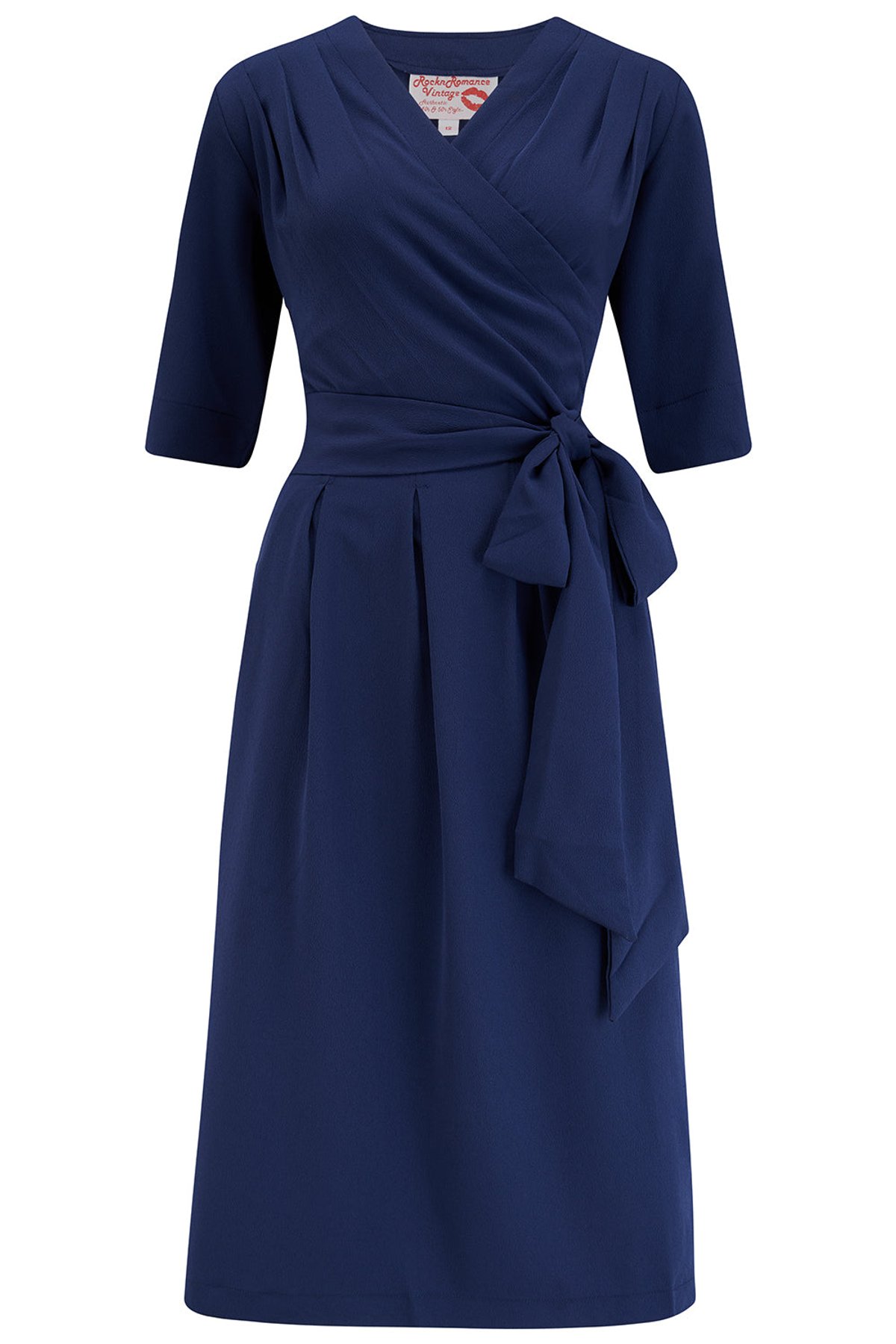 Unleash your inner vintage siren with the Vivien Full Wrap Dress in Navy—where timeless elegance meets playful sophistication. Its sleek navy hue and graceful chest pleats create a silhouette that’s utterly claws-down gorgeous. The wrap design not only flatters every curve but also offers a custom fit that feels like it was made just for you. Crafted with a keen eye for detail, this dress combines classic charm with a hint of mischief, perfect for turning heads without trying too hard.