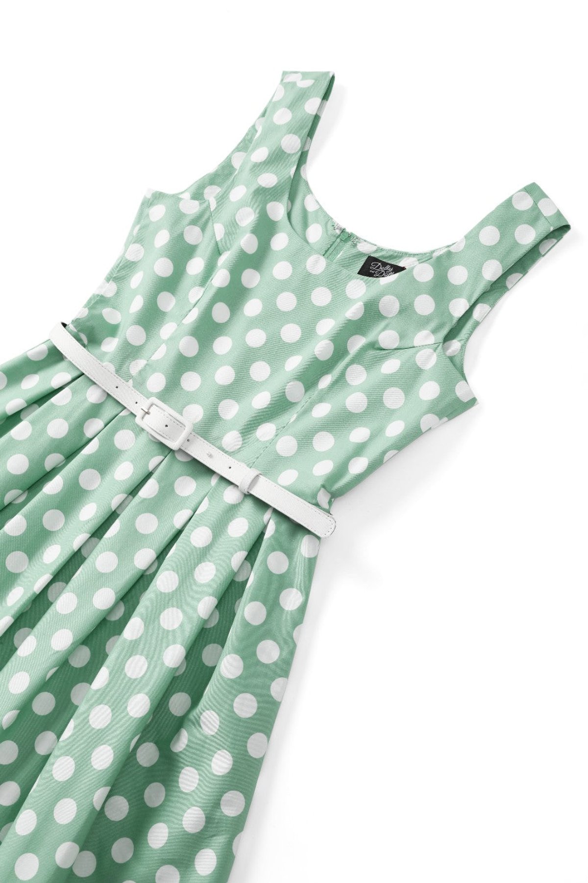 Step into the charm of yesteryear with our Ophelia Sage Green Polka Dot Midi Dress—where vintage flair meets modern chic. The playful sage green hue dotted with crisp white polka dots makes this dress a true showstopper, while the fitted bodice and flirty scoop neckline create a figure-flattering silhouette that’s both elegant and fun. The midi skirt with charming box pleats adds just the right amount of movement, perfect for twirling into the weekend or turning heads at a garden soirée.