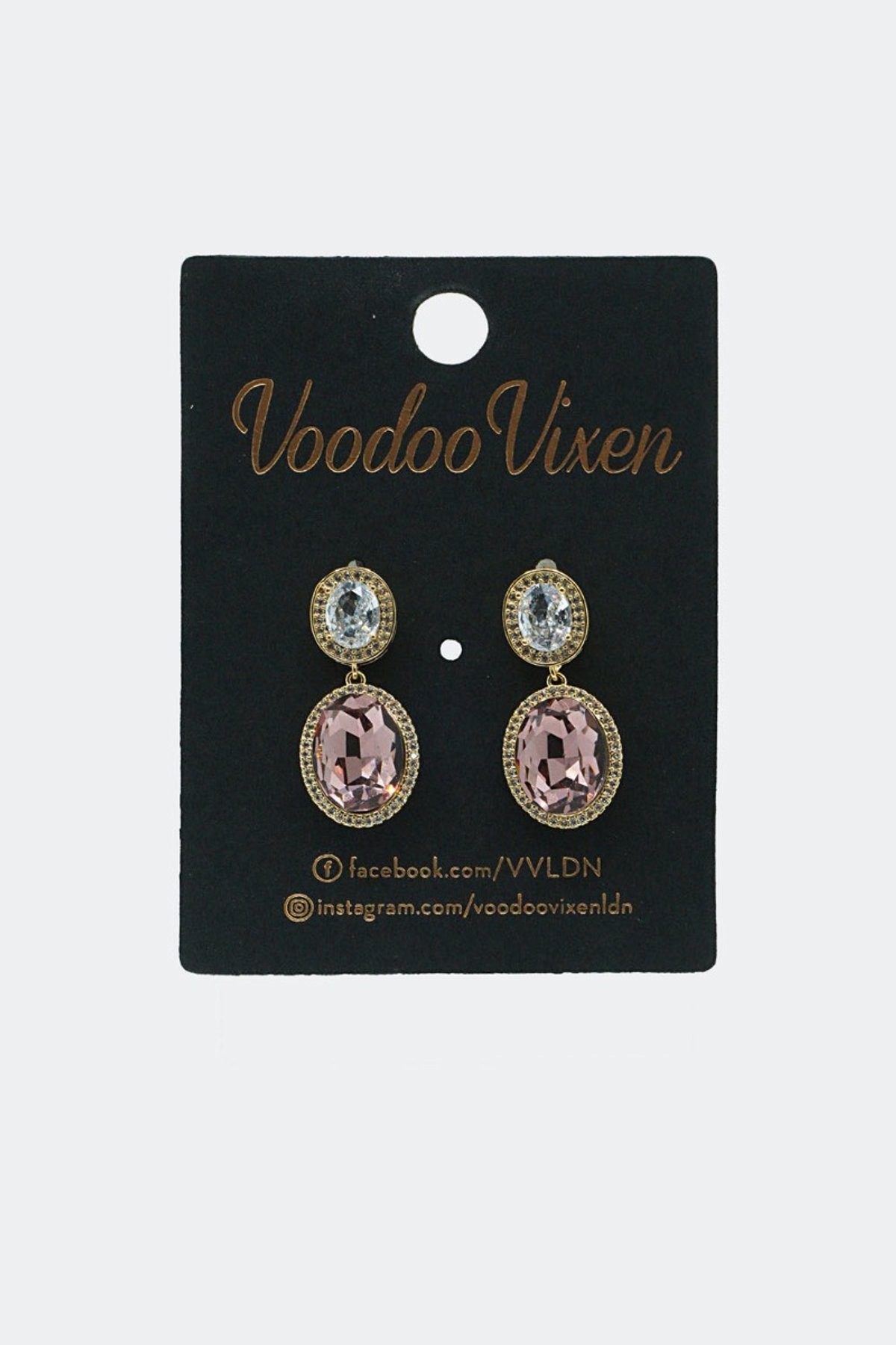 💎 Introducing our Oval Crystal Drop Earrings— the epitome of vintage glamour combined with modern elegance. Crafted with dazzling clear and purple crystals, these stunning earrings are exquisitely framed by sparkling diamante detailing. 💫