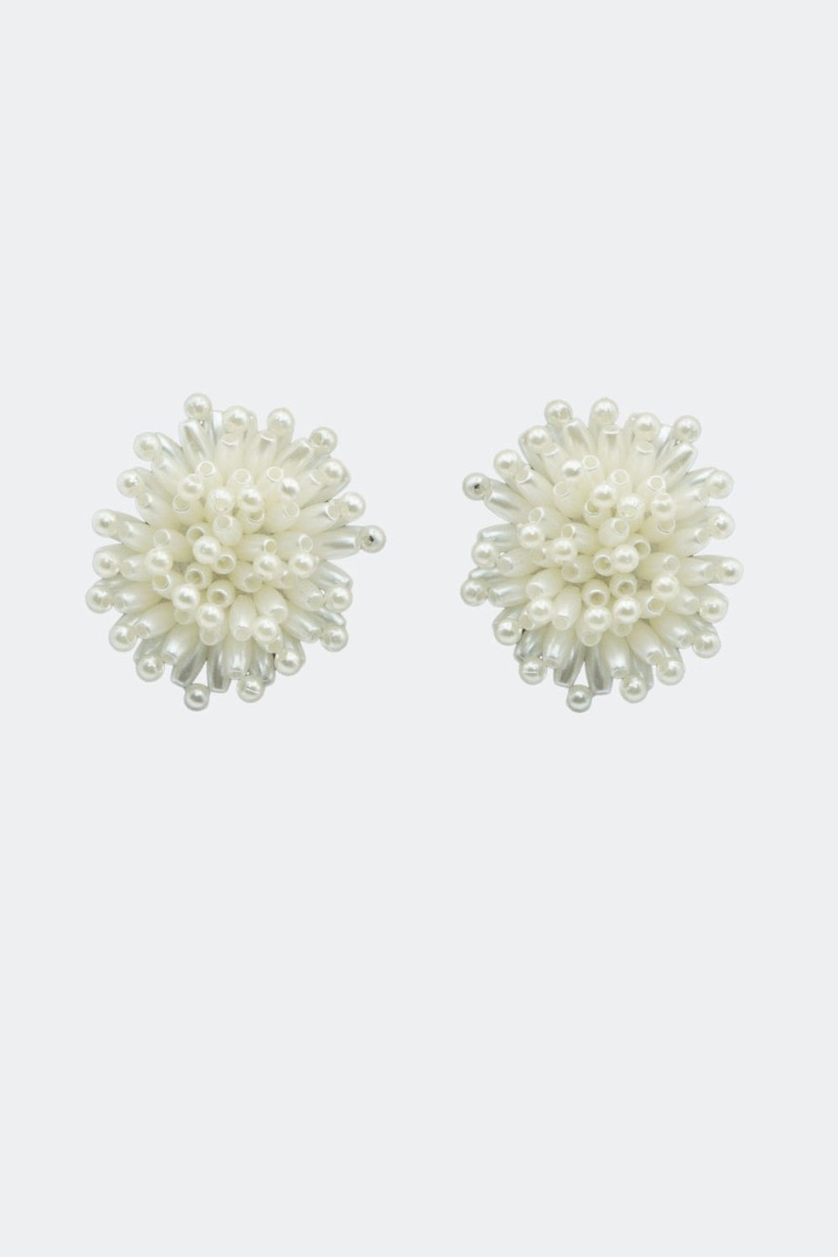 The pearl-like beads are artfully arranged, creating a sophisticated statement piece that captivates and draws attention. Set on sturdy metal stud fastening, your earrings are guaranteed to stay securely in place while you dance, strut or twirl through your day 💃.