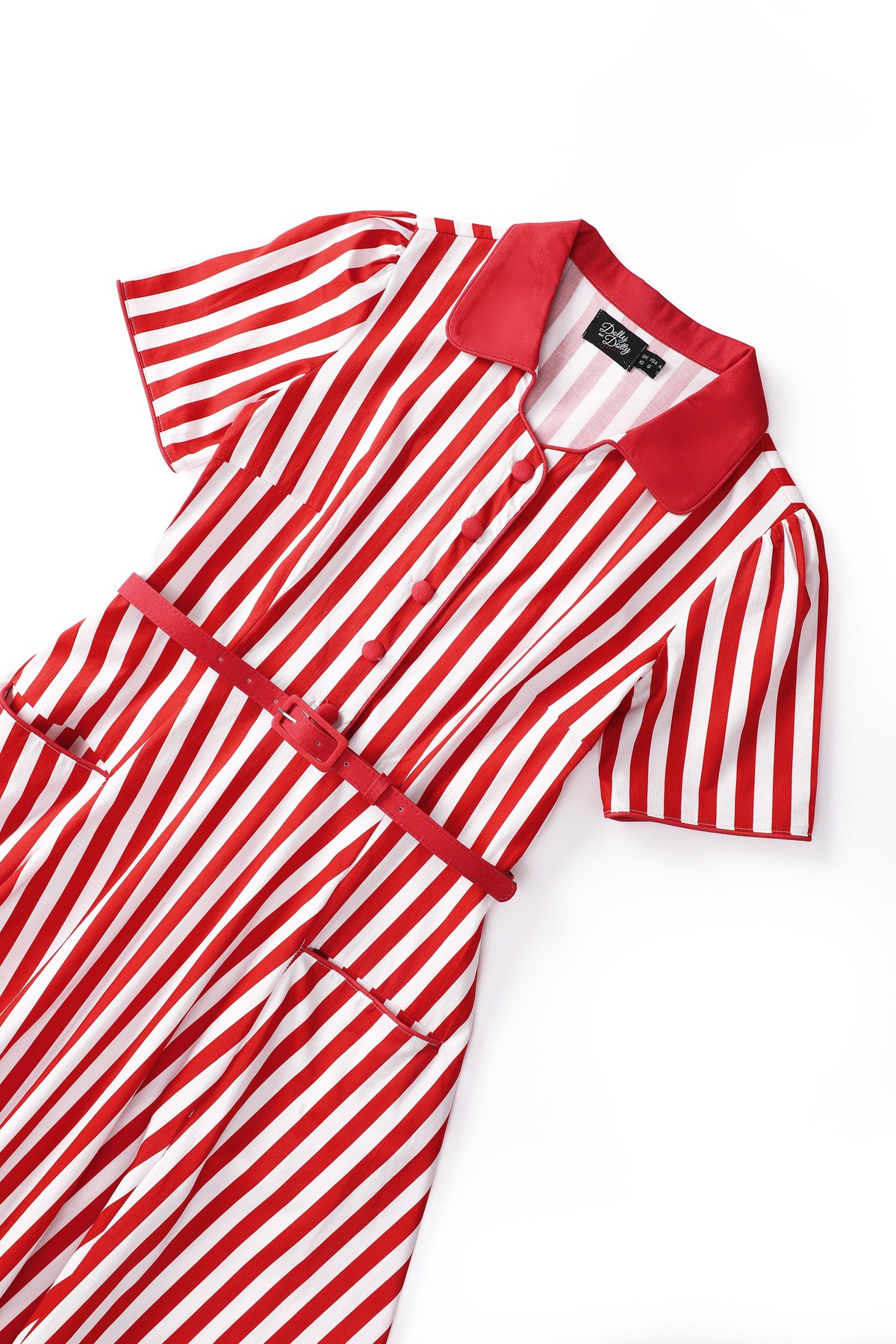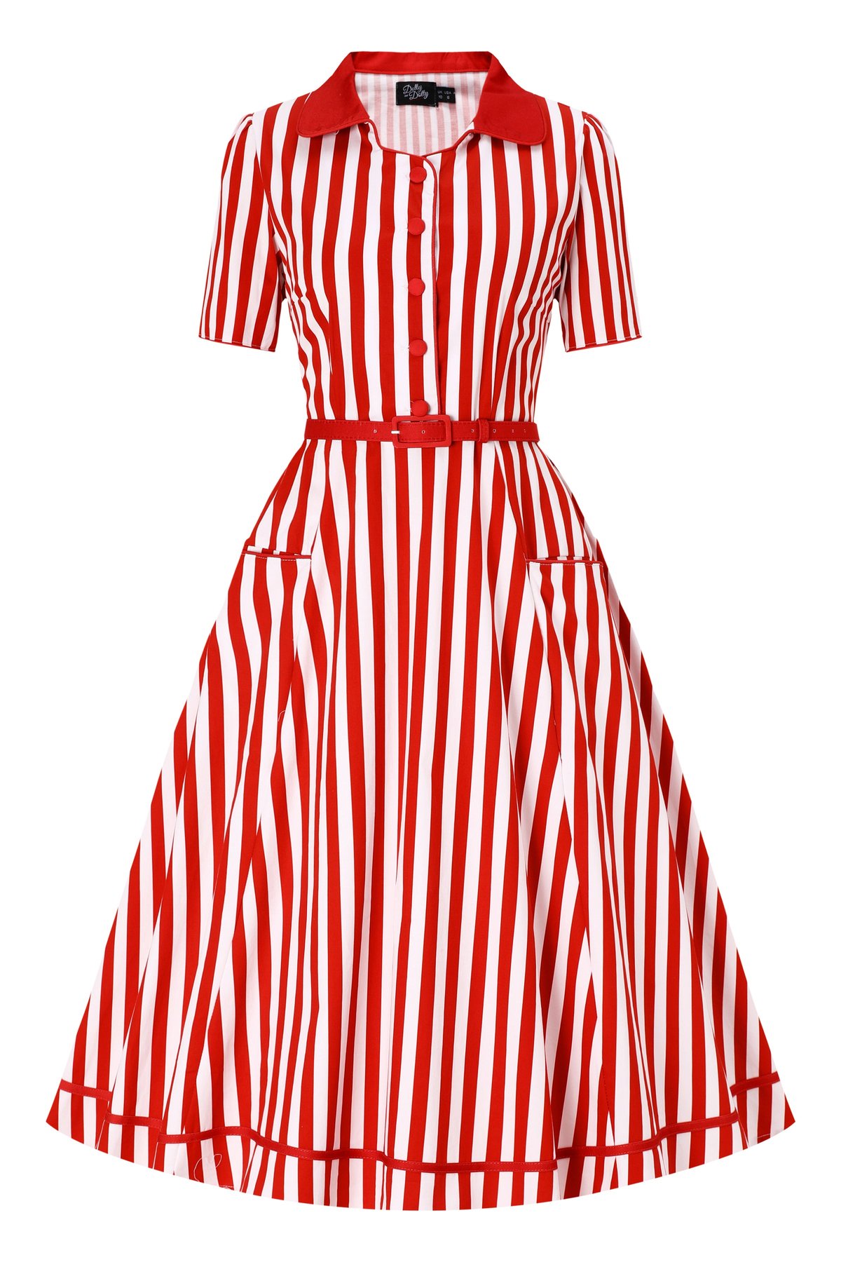 Unleash your inner siren with the Penelope II, a striped stunner that’s as playful as it is chic. The bold red and crisp white stripes make a purrfect statement, while the fitted bodice and flirty swing skirt ensure you look claws-down gorgeous from every angle. The charming ice blue trimming adds a subtle pop of cool, making this dress a true showstopper for those who love to turn heads. Crafted from a comfy cotton blend, it’s as easy to wear as it is eye-catching — perfect for when you’re ready to dazzle and delight.