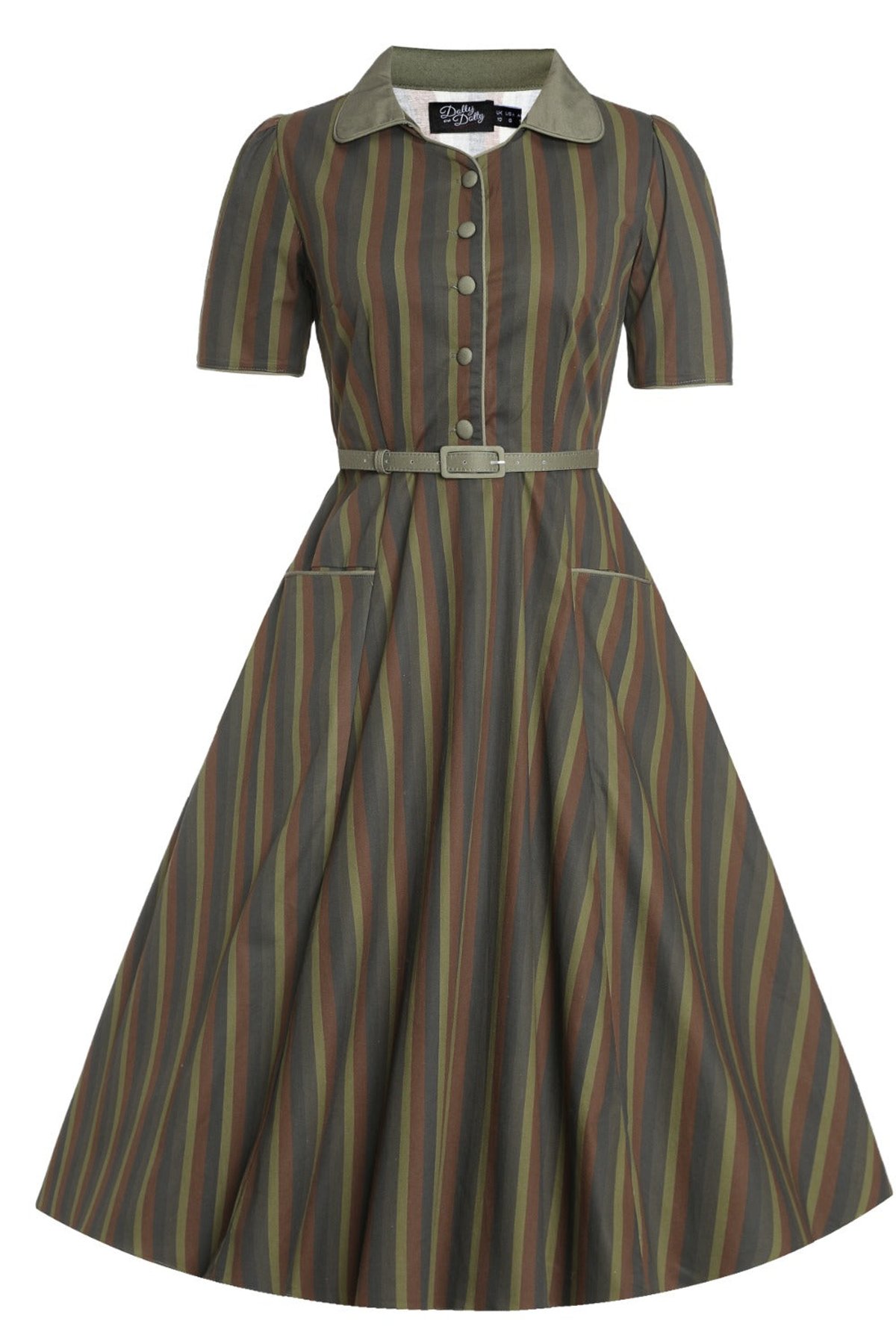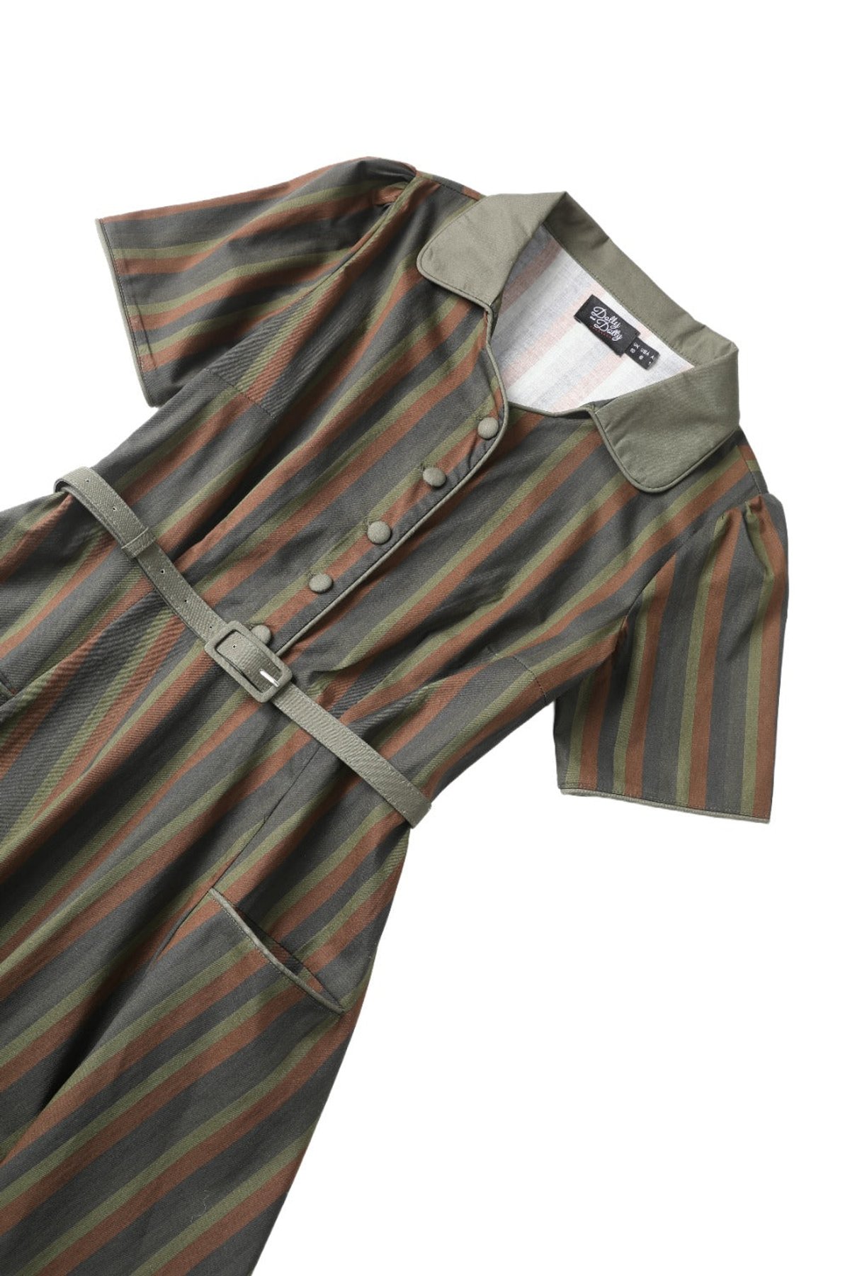 Penelope II Olive Striped Shirt Dress with Belt  Shop now at Kitty Darling